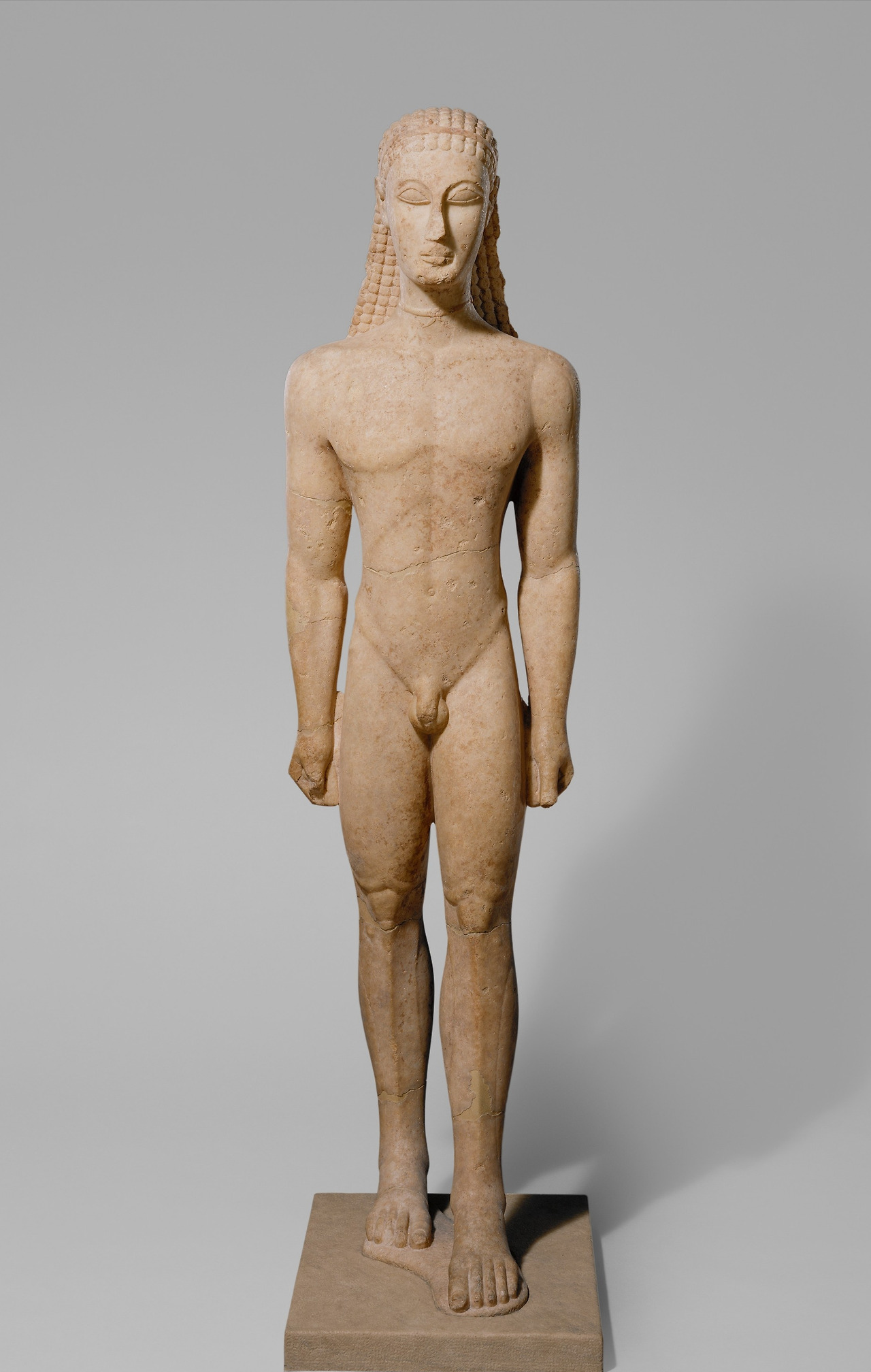 그리스 조각은 크게 세 시기로 구분된다. (칼로 무 썰듯 구분되는 것은 아닐뿐더러 학자들마다 다양한 의견이 분분하지만) 재미있는 것은 각 시기의 구분이 중요한 전쟁의 발발 시점과 맞물린다는 점이다. 기원전 800년경부터 500년경에 걸친 1)아르카익 시대 (혹은 고졸기), 페르시아 전쟁 (영화 〈300〉 덕분에 더 유명해졌지만 이 영화가 다룬 건 3차 원정 시기임을 꼭 기억하자) 이후부터 시작된 2)고전 시대, 기원전 323년 알렉산더 대왕의 사망 전후부터 기원전 31년경(이미 그리스가 아니라 로마의 사정이지만, 일단 로마의 아우구스투스가 악티움 해전에서 숙적 안토니우스와 이집트 여왕 클레오파트라의 연합군에 승리하는 시기)까지의 3)헬레니즘 시대로 구분할 수 있겠다.