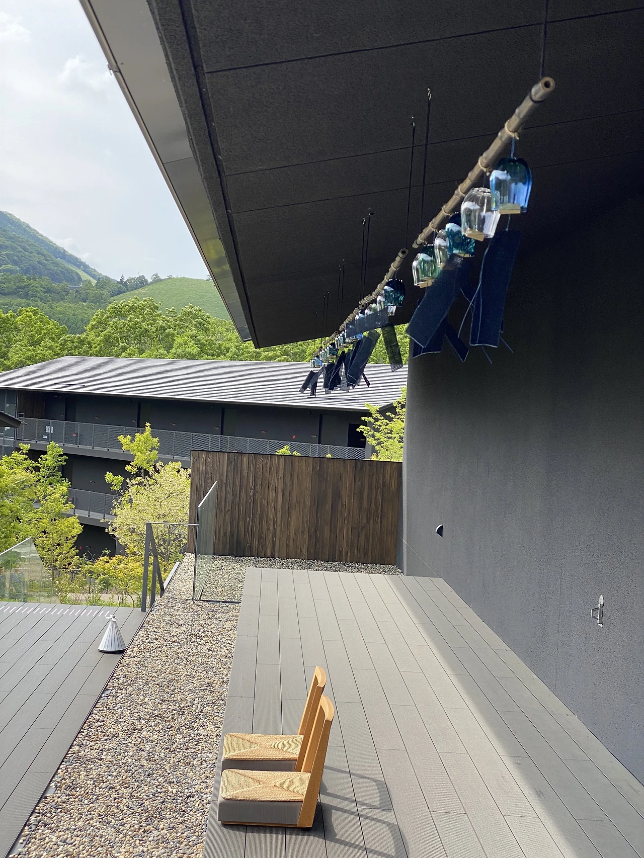 카이 유후인의 본관 1층 앞 산책로에서 보이는 풍경.
