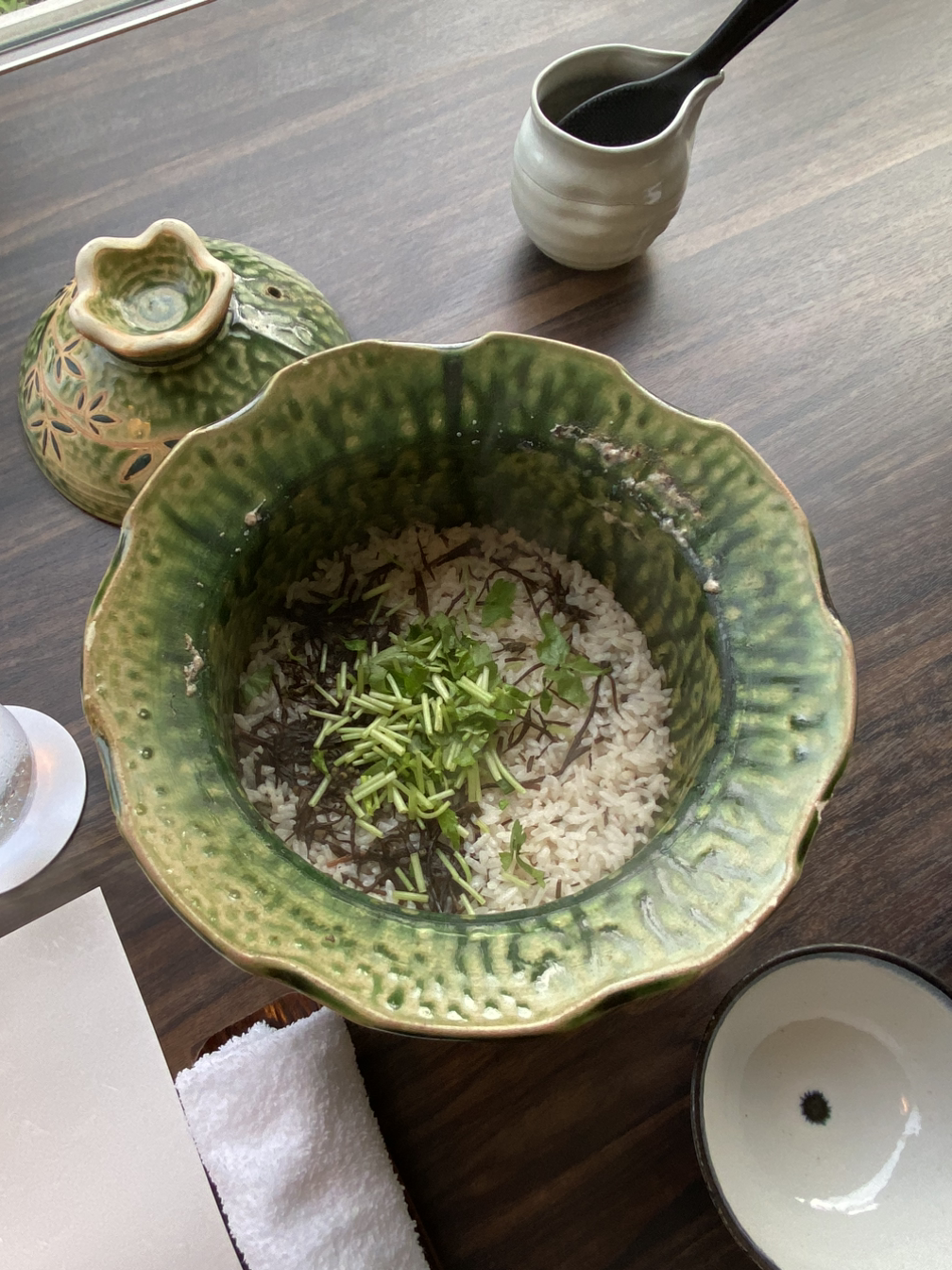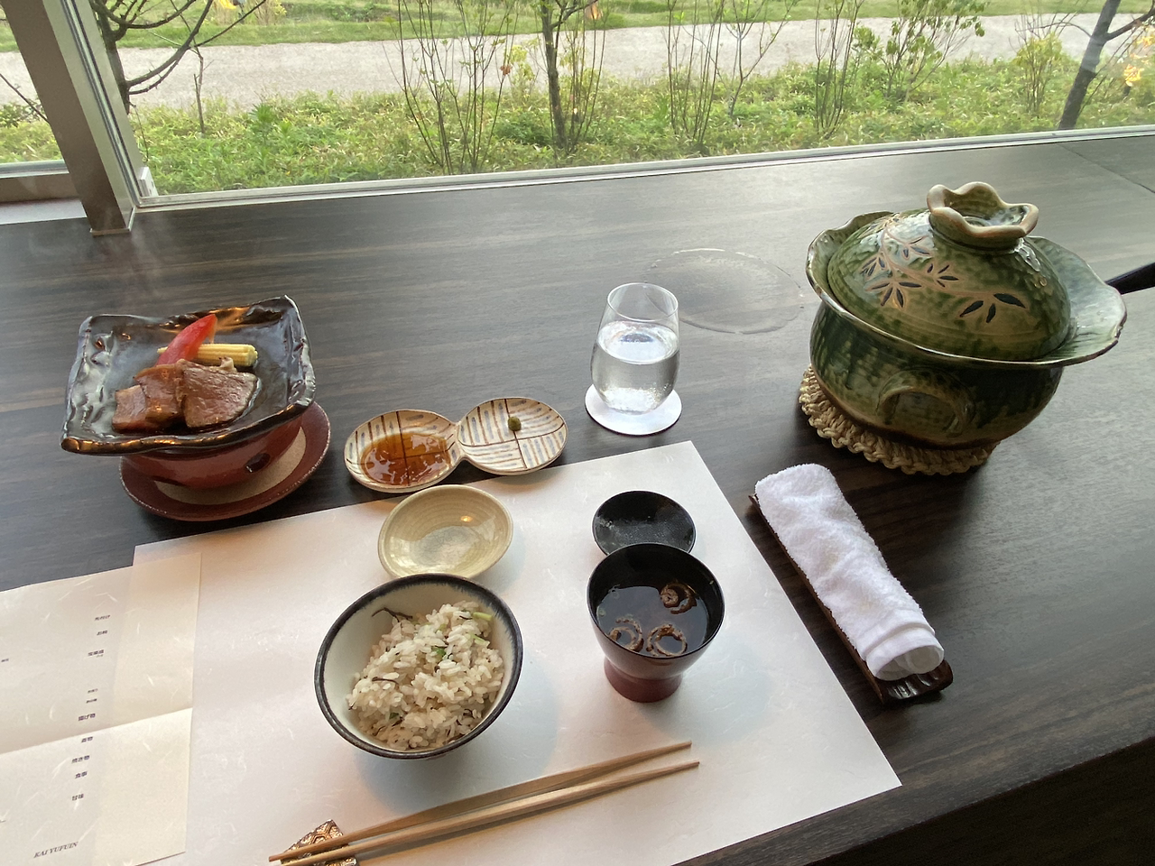기절할 듯 맛있는 솥밥. 일단 쌀농사로 유명한 유후인이기도 하고 (계단식 논이 카이 유후인의 랜드마크인 이유) 채소와 톳의 비율이 대단히 적절하여 엄청나게 조화로운 맛. 다만 시소가 좀 들어간 것 같은데 안 들어갔으면 더 완벽했을 듯. (시소 싫어)