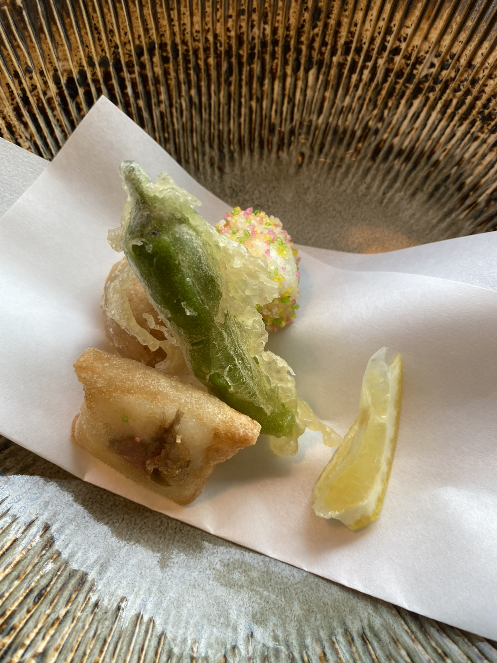일식 튀김은 언제나 옳다. 채소와 완자로 추정되는 튀김인데 풋고추가 정말 최고였음. 튀김옷도 식감과 간이 너무 완벽해서 하마터면 울 뻔.