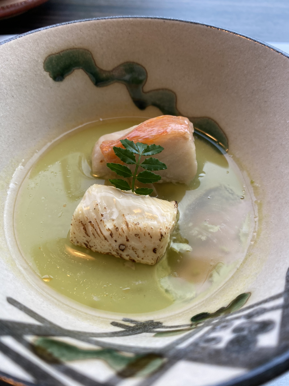 일식 계란찜인 자왕무시를 재해석한 요리라고. 연어와 유바를 넣고 계란 대신 두유를 사용한 일종의 찜 요리인데 맛있음. 유바는 식감과 맛이 교토에 비견할만한 수준이었음.