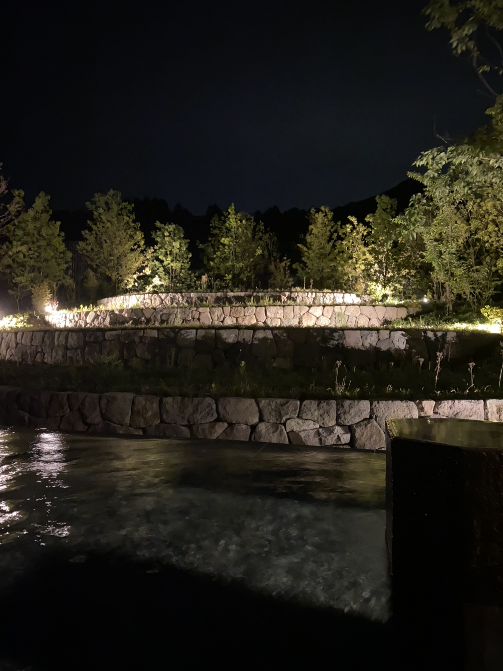 적당히 소화를 시킨 후 카이 유후인이 제공하는 유카타를 착용하고 본관의 대욕장으로. 유카타는 쑥색이고 반폭 약식 오비는 겨자색인데 진짜 예쁨. 교토에서 익힌 착용법을 이렇게 활용하는군. 가장 쉽고 좋아하는 카이노구치 무스비(대략 조개입 매듭?)로 오비를 묶었는데 정식으로 너무 잘 입었다면 직원 분들이 감탄해 주셨음. 대욕장은 새벽 1시까지이고 대욕장 노천탕은 밤 11시까지 이용할 수 있는 듯. 느지막이 갔더니 아무도 없어서 전세 내고 사용. 실내 대욕장은 그냥 일본식 고급 사우나와 크게 다르지 않음. 대욕장 노천탕은 온천수가 좋고 분위기 역시 좋았는데 솔직히 별채에 딸린 개인 노천탕이 더 좋음. 그래도 대욕장 노천탕에서 보는 풍경이 굉장히 멋있음. 근데 수온이 상당히 높은 편이라 조금 낮은 온도의 물이 퐁퐁 솟아나는 육각 기둥에 바짝 붙어 있어야 했음.