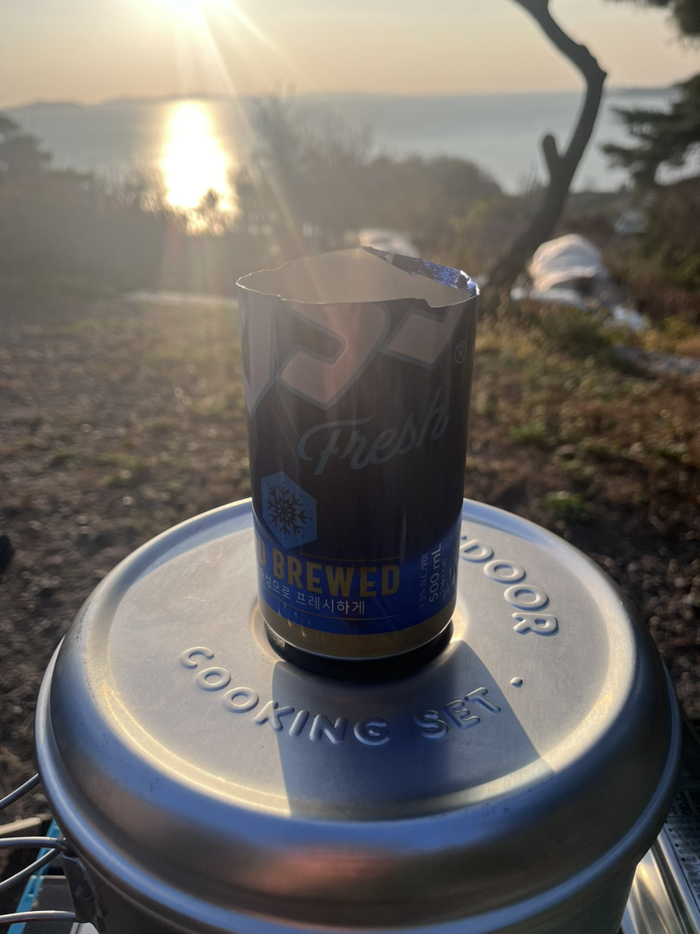 일찍 도착해 좋은 자리를 선점하고 텐트를 치고나면 캔맥주 한잔으로 여유를 찾아본다