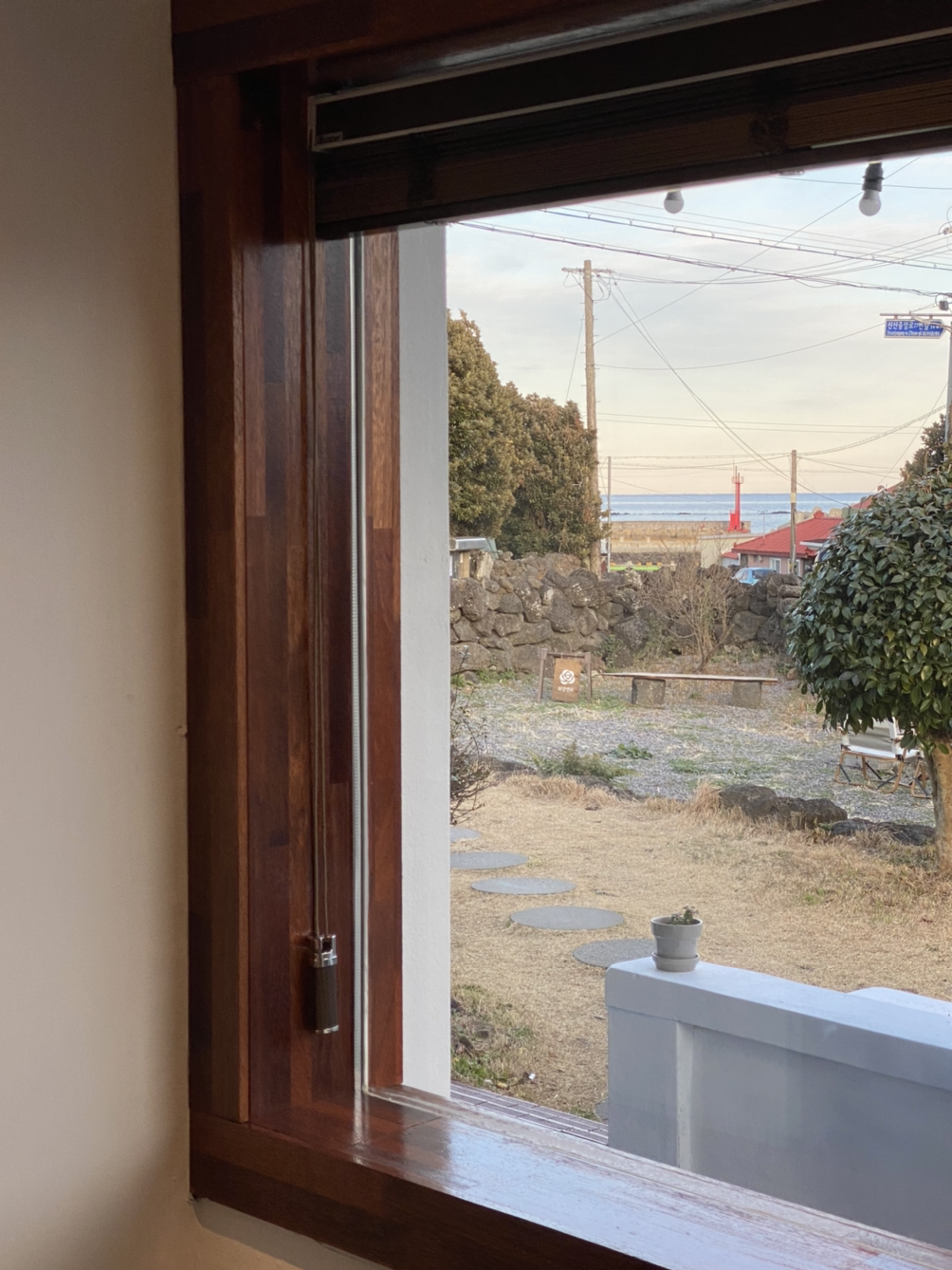 체크인 시간을 조금 넘겨 숙소에 도착했다. 낯선 동네 골목에 들어서서 바다를 향해 조금씩 다가가니 오른편에 사진에서 본 집이 보였다. 아기자기한 마당을 지나 오래되고 낡은 집을 예쁘고 단정하게 잘 만들어놓은 집 현관이 보였다. 메시지로 받은 비밀번호를 누르고 들어가니, 어린 시절 친척집에 온 듯 옛날 집 같은 구조의 집 내부가 보였다. 문턱이 높은 거실에 들어서니 양쪽으로 침실이 있고 정면에 커피잔과 핸드 드리퍼가 놓인 그릇장이 있었다. 침실에 들어가 누우니 넓은 창으로 적당히 넓은 마당과 키 작은 야자수 너머로 멀리 바다가 보였다.