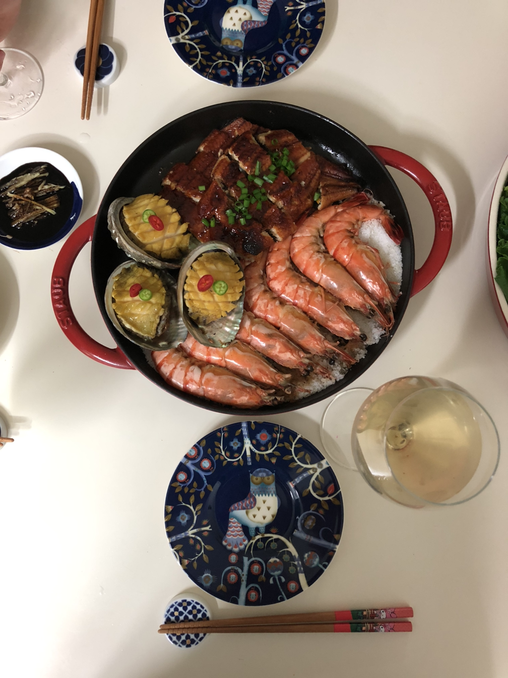 그래서 나는 정기적으로 장어를 굽는다. 우리 집 장어 러버들이 좋아하는 음식을 가장 맛있는 상태에서 먹을 수 있도록 프라이팬에서 에어프라이어로, 다시 프라이팬으로 옮겨 가며 굽는 수고를 마다하지 않는다. 그리고 동시에 내가 좋아하는 새우와 전복도 각각 버터에 소금에 양껏 굽는다. 우리는 그렇게 서로가 싫어하는 음식을 앞에 두고 각자가 좋아하는 음식만 먹으며 평화로운 식사를 즐긴다.