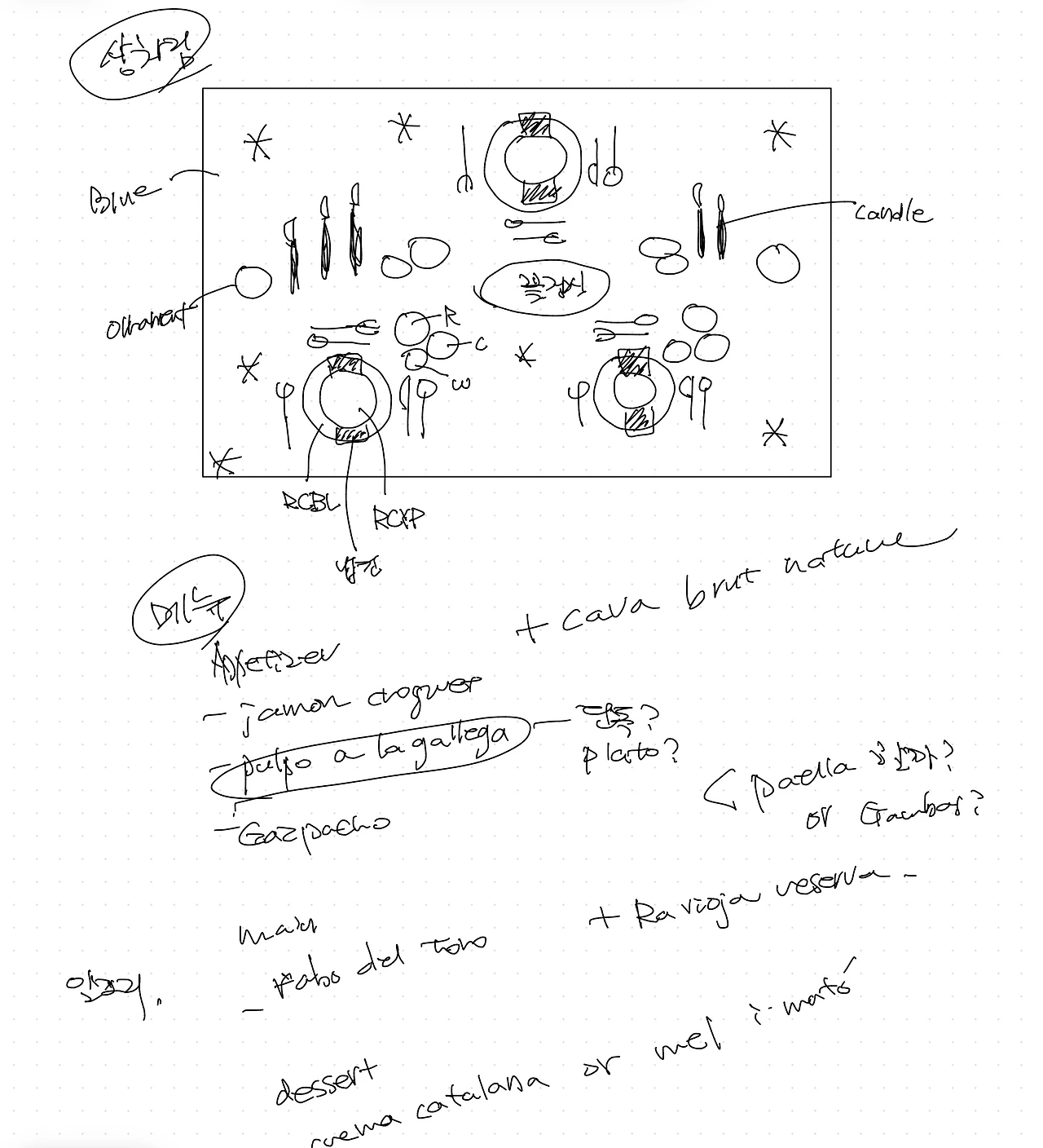 메인 메뉴가 정해지면 곁들일 음식과 디저트, 술도 정한다. 그에 맞는 식기도 고르고, 냅킨이나 캔들, 그 밖의 장식도 고민한다. 그림을 그려 보거나 식탁에 미리 세팅해 보는 수고로움도 마다하지 않는다. 주변에서는 대단한 손님이라도 모시냐고 무리하지 말라고 하지만, 1년 365일 같은 상에서 같은 밥과 반찬을 먹는 사람들이야말로 내 인생에 온 가장 대단한 손님이 아닌가. 그러니 일 년에 하루쯤 이렇게 무리하고 공들여 접대할 수 있는 대단한 손님들이 있다는 건 오히려 감사할 일이다.