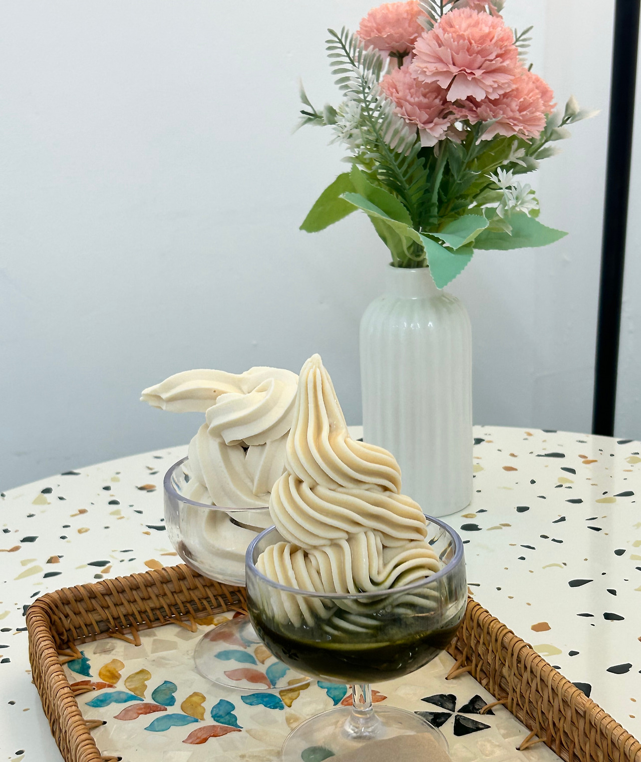 슴슴한 맛 , 유화제 없는 샤벳 식감의 젤라또인 데 가끔 건강한 단맛이 생각날 때 찾았다.