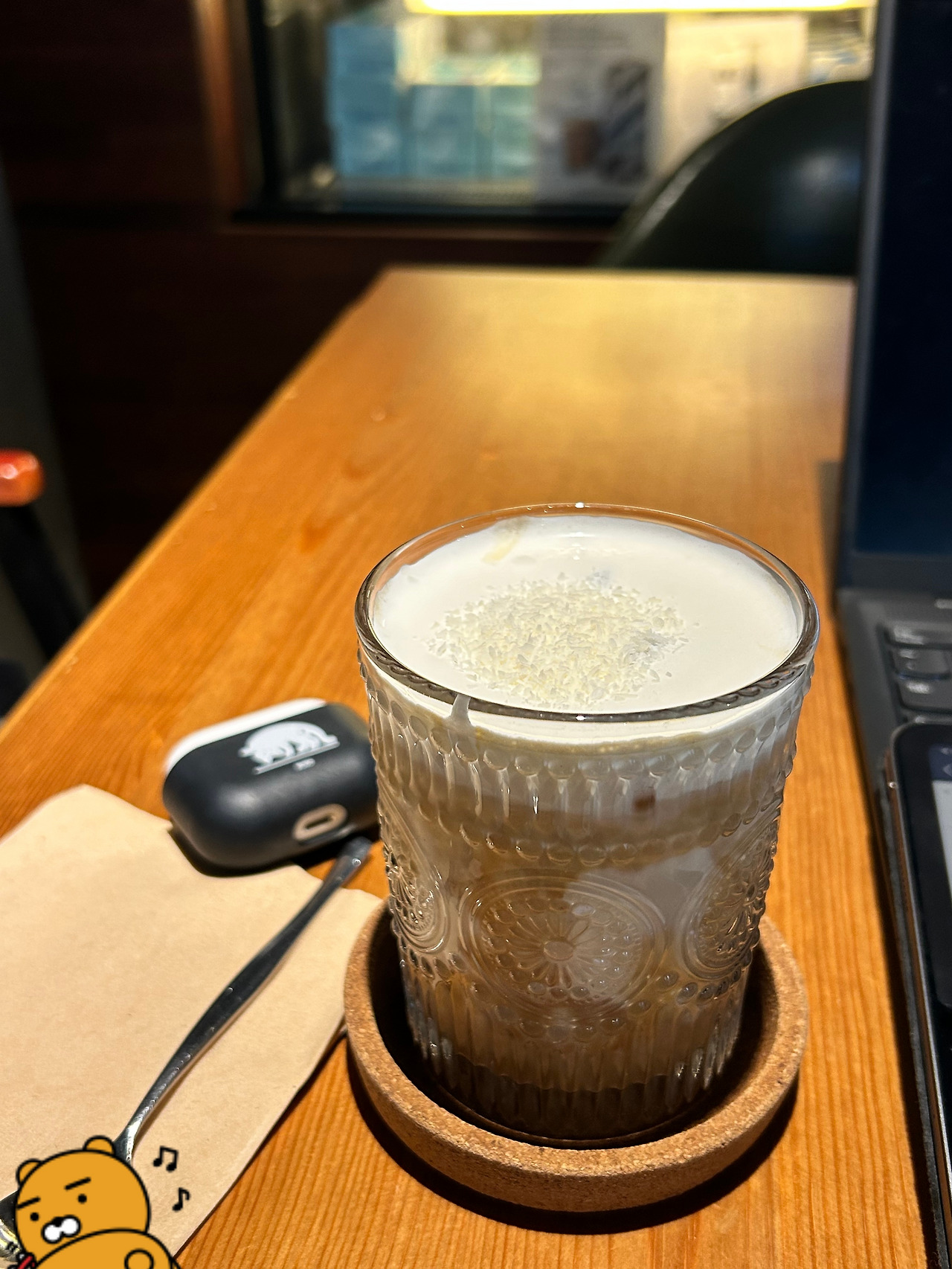 음료 가격은 비싼편이나 매장 내부가 콘센트도 곳곳에 많아 오래있기 좋게 되어있고, 새로생긴 매장이라 정말 깨끗하다.