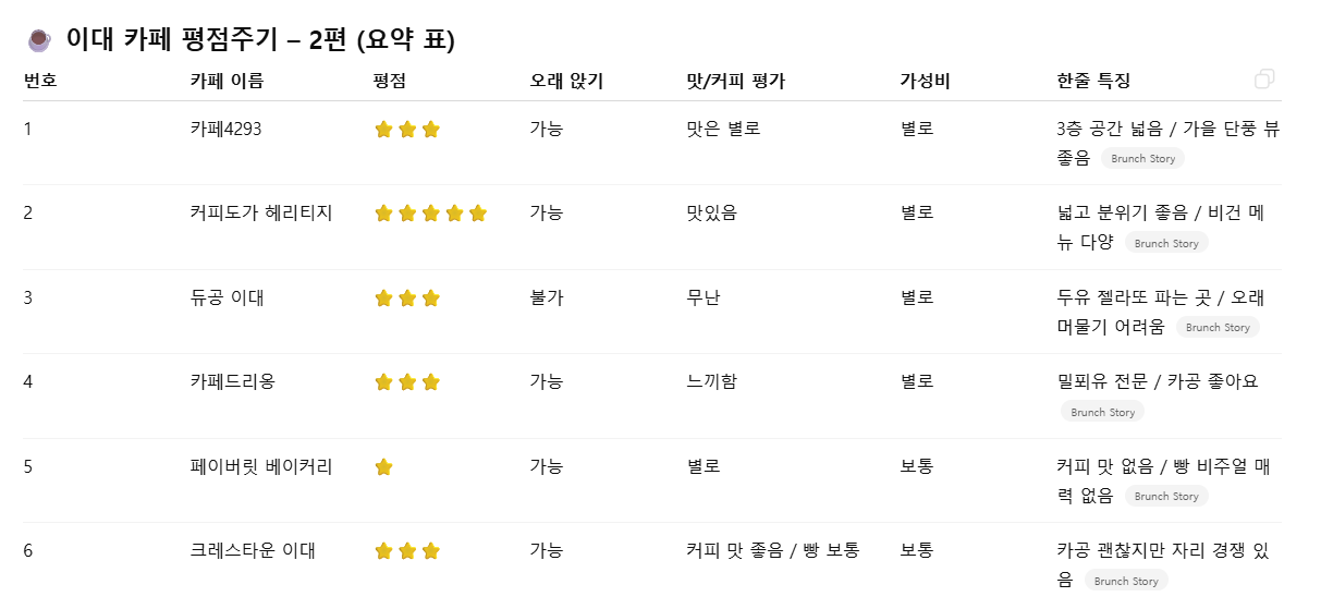 네이버에 '이대카페' 검색시 뜨는 가게들 중 가본 곳들로 작성했습니다!