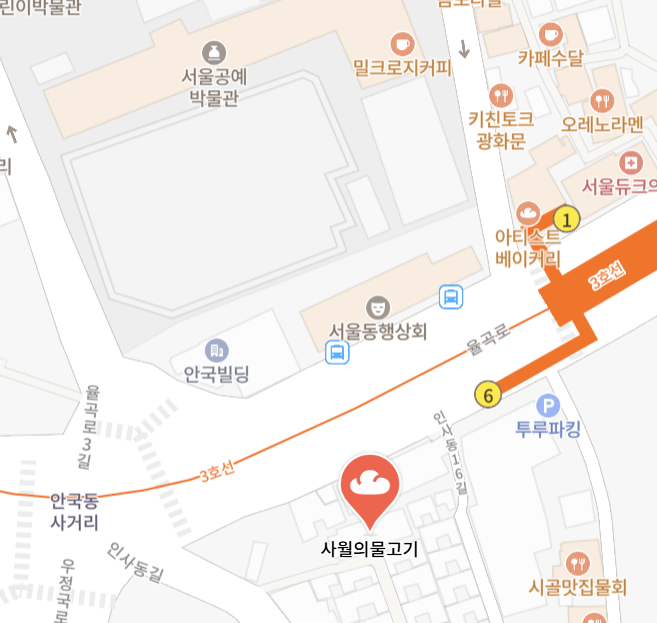 남쪽으로 가면 인사동 쌈지길이 나온다.