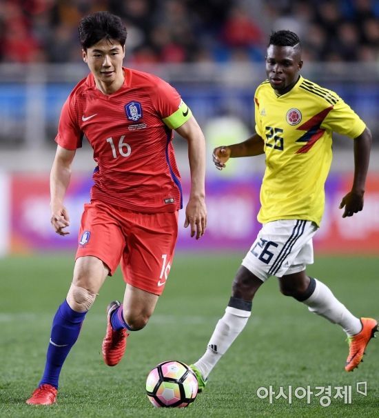 대표팀 경기에서 드리블하는 기성용 [사진=아시아경제]