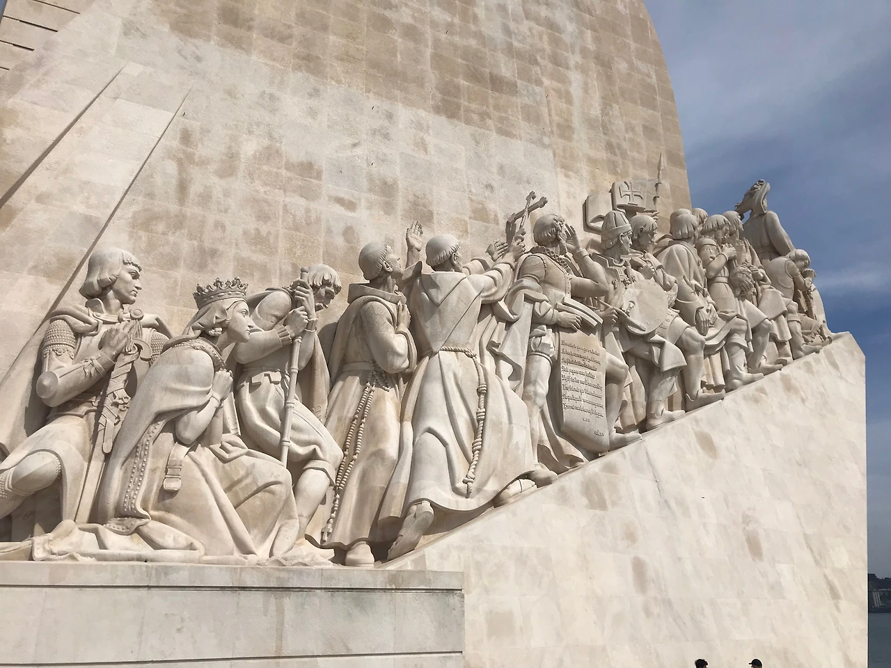 벨렝탑부터 발견기념비까지 산책로가 길게 이어져 있는데다 멋진 요트들이 정박해 있어 관광지 느낌이 물씬 난다. 벨렝탑 맞은편 공원은 잔디가 넓게 펼쳐져 있어 사람들이 약속이라도 한 듯 자리잡고 누워서 햇빛을 쬐고있다. 역시 유러피언들은 해만 있으면 어디서든 철푸덕 앉아버린다. 벨렝탑은 범죄자를 수용했던 감옥으로 사용했다고도 하는데 이 탑을 기준으로 바다와 강이 구분된다고 한다. 이름만큼이나 소담하고 예뻐서 배경으로 사진을 자꾸 찍게 된다. 한참을 둘러보고 발견기념비까지 걸어갔다. 보트에서 보이던 부조라고해야 하나 기념비 하단에서 대각선방향으로 조각한 사람들의 모습이 궁금해서 가까이 가 보았다. 다양한 직위의 사람들을 통해 대항해 시대에 대한 영광을 표현해 낸 것 같다. 그냥 돌아가기 아쉬워 기념비 안을 들어가보니 전망대로 이용되고 있었다. 어디든 전망대는 하나정도 올라가는데 막상 올라가보니 담벼락이 높아 막내는 키가 작아 시야가 가려져 좀 아쉬웠다. 그래도 높은 곳에서 내려다 보는 리스본 전경은 시원했다.