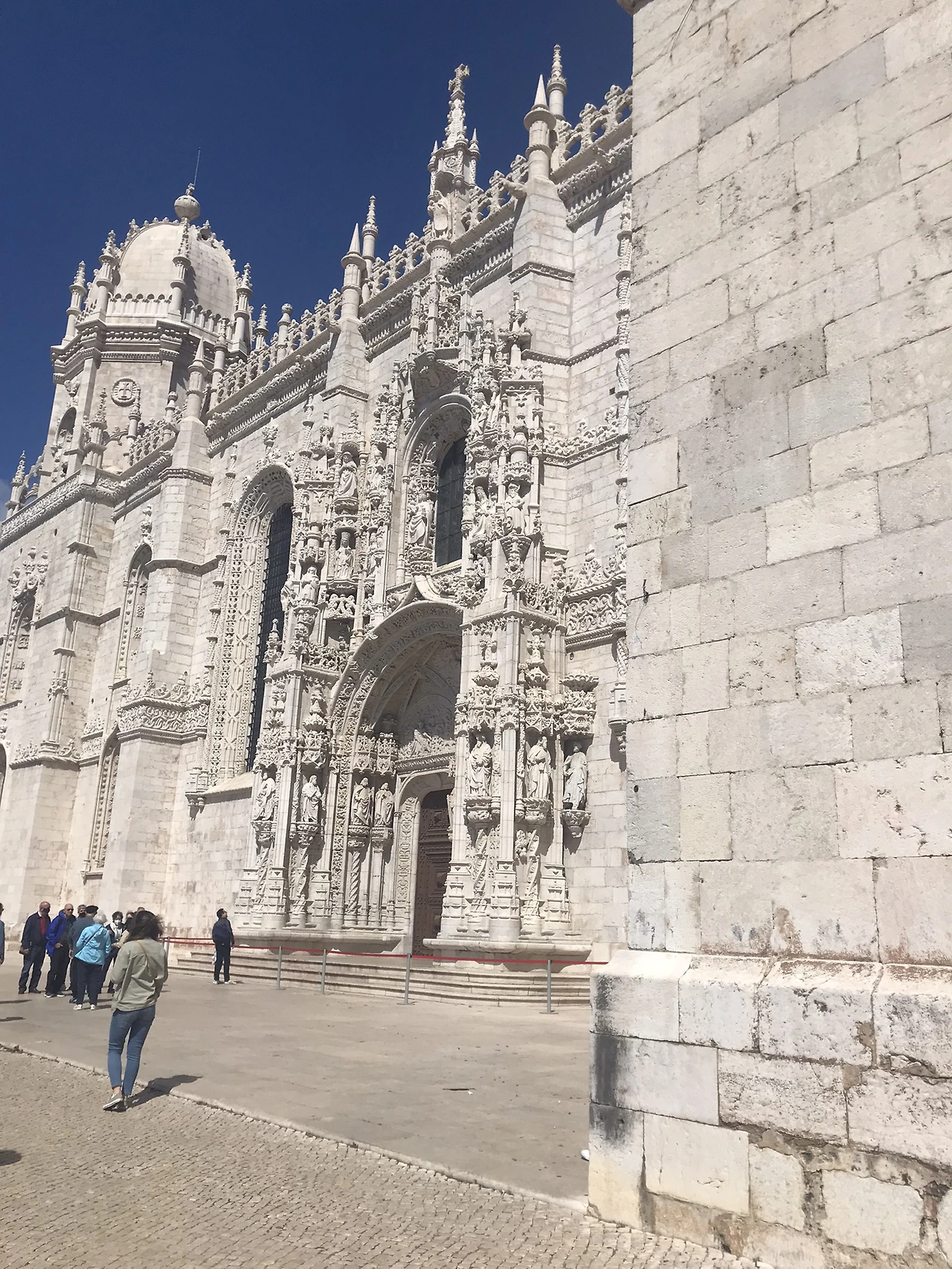이 수도원은 유네스코 문화유산에 등재되어 있는 건축물인데 1500년대 바스코 다 가마의 항해를 기념하기 위해 지었다고 한다. 그 당시 포르투갈은 부유했기 때문에 수고원을 짓는게 돈을 아끼지 않았다고 하는데 건축물을 장식하는 조각들을 보면 바로 수긍이 된다. 굉장히 부드러우면서도 섬세한 조각들이 수도원 외관을 가득 채우고 있기 때문이다. 수도원이라고 하는데 어쩜 이렇게 화려할까 싶은 생각이 들 정도이다.