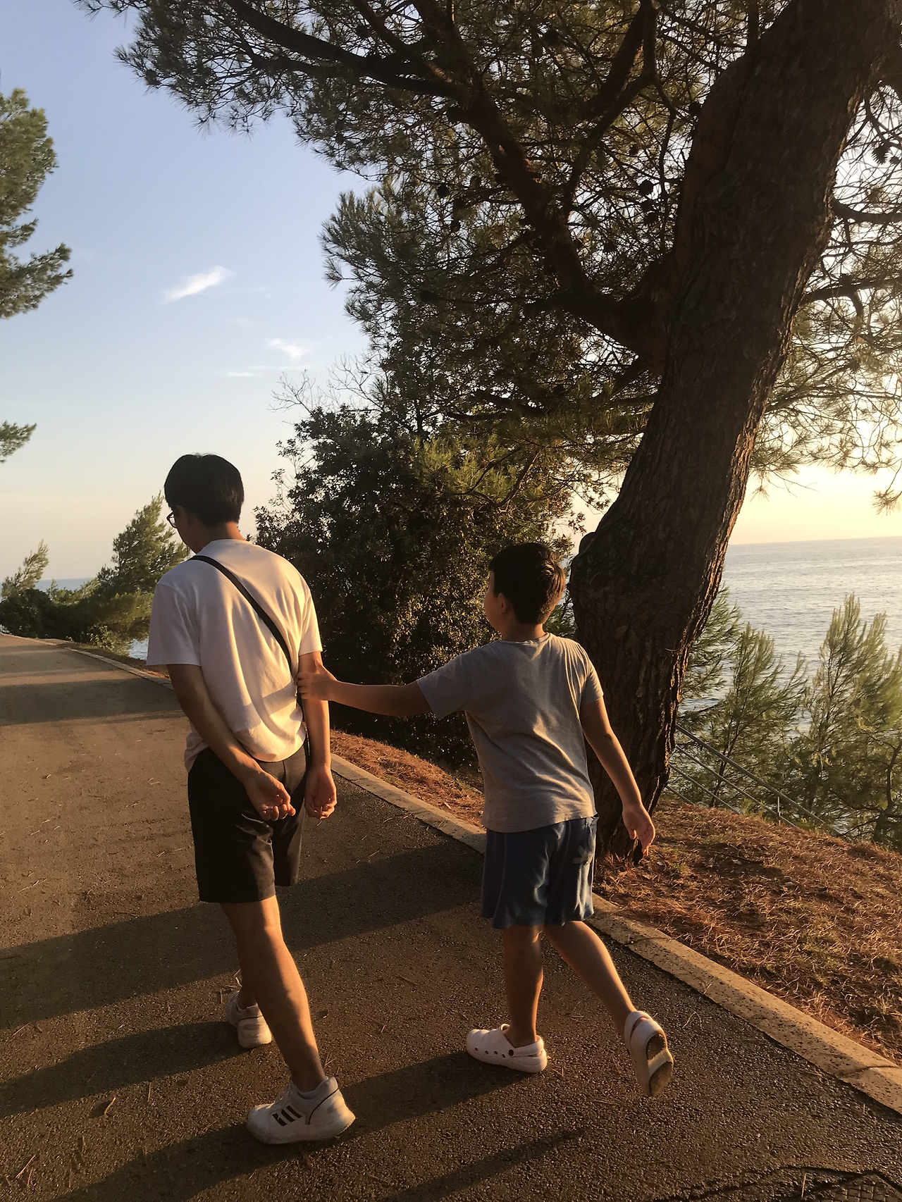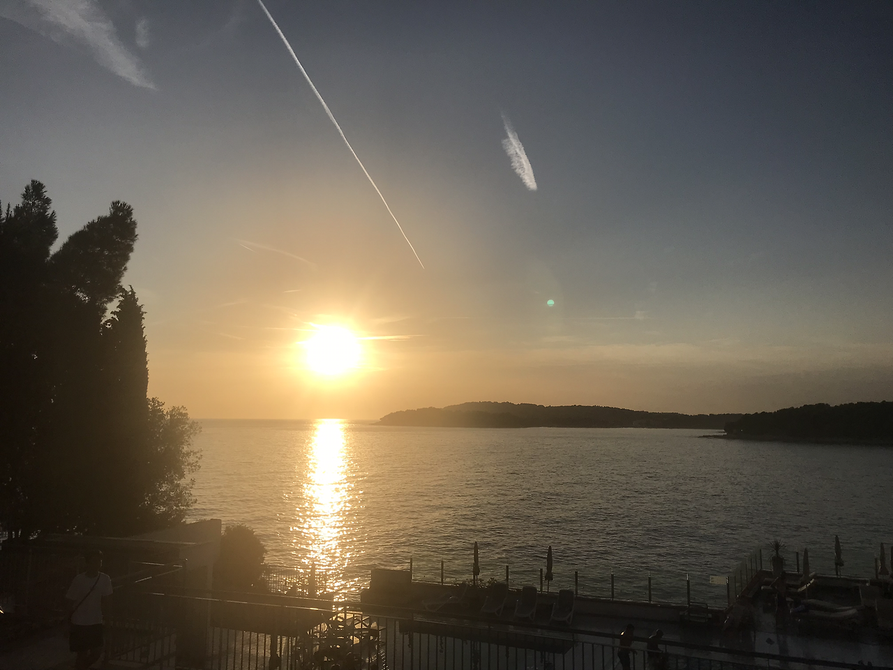 400km가 채 되지 않는데 슬로베니아도 살짝 걸쳐져 있고 5시간 30분으로 구글이 말해준다. 자자 어쩄든 떠나보자. 다행히 고속도로는 차가 많지않아 예정시간에 도착했다. 사진과 크게 다르지 않은 그저 그런 평범한 오래된 리조트이다. 대충 짐을 풀고 리조트 내를 산책을 하는데 서향의 아드리아해를 마주하고 있어 석양이 끝내준다. 시야를 가리는 건물 하나 없이 바다가 시야에 있으니 눈은 물론 내 단전 끝까지 다 트이는 것 같다. 바다는 언제봐도 몰입하게 하는 희한한 힘이 있다. 철썩거리는 파도소리를 들으며 수평선 저 너머 지는 해를 보고 있자니 새벽의 물난리는 이미 머릿 속에서 사라졌다. 모든 고민도 걱정도 현실도 다 잊게 된다. 아이들도 나와 같은 마음인지 한참을 바다와 석양에서 눈을 떼지