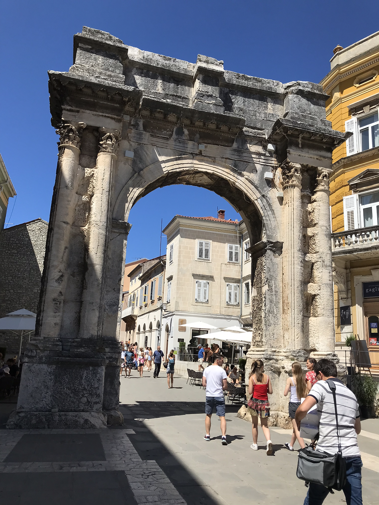 리조트에서 풀라 구시가는 불과 차로 15분 거리이다. 반나절 정도 구시가를 돌아보는 것도 좋을 것 같아 오전에 길을 나선다. 몇 년전 크로아티아의 유명도시들-자다르,스플리트,두브로브니크 여행을 했는데, 이 지역이 로마문화권이었다는 것은 그 당시 많은 유적들을 봤기에 이미 알고 있었다. 성벽이나 도로의 형태, 아레나 등 많은 유적이 이탈리아의 곳곳과 판박이였다. 스플리트의 디오클레티아누스 궁전을 보고 과거 로마문화권의 영향력이 얼마나 넓게 장악하고 있었던건가 하며 감탄했던 기억도 난다.