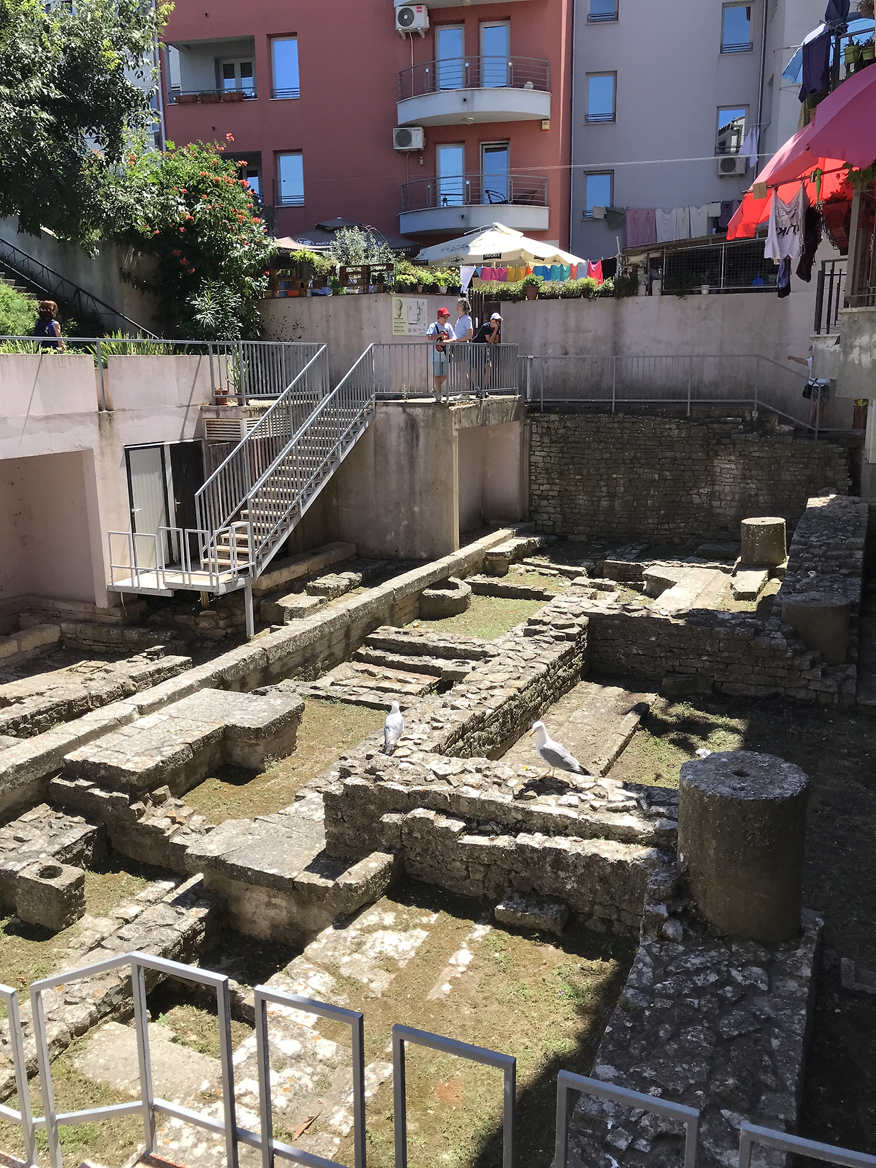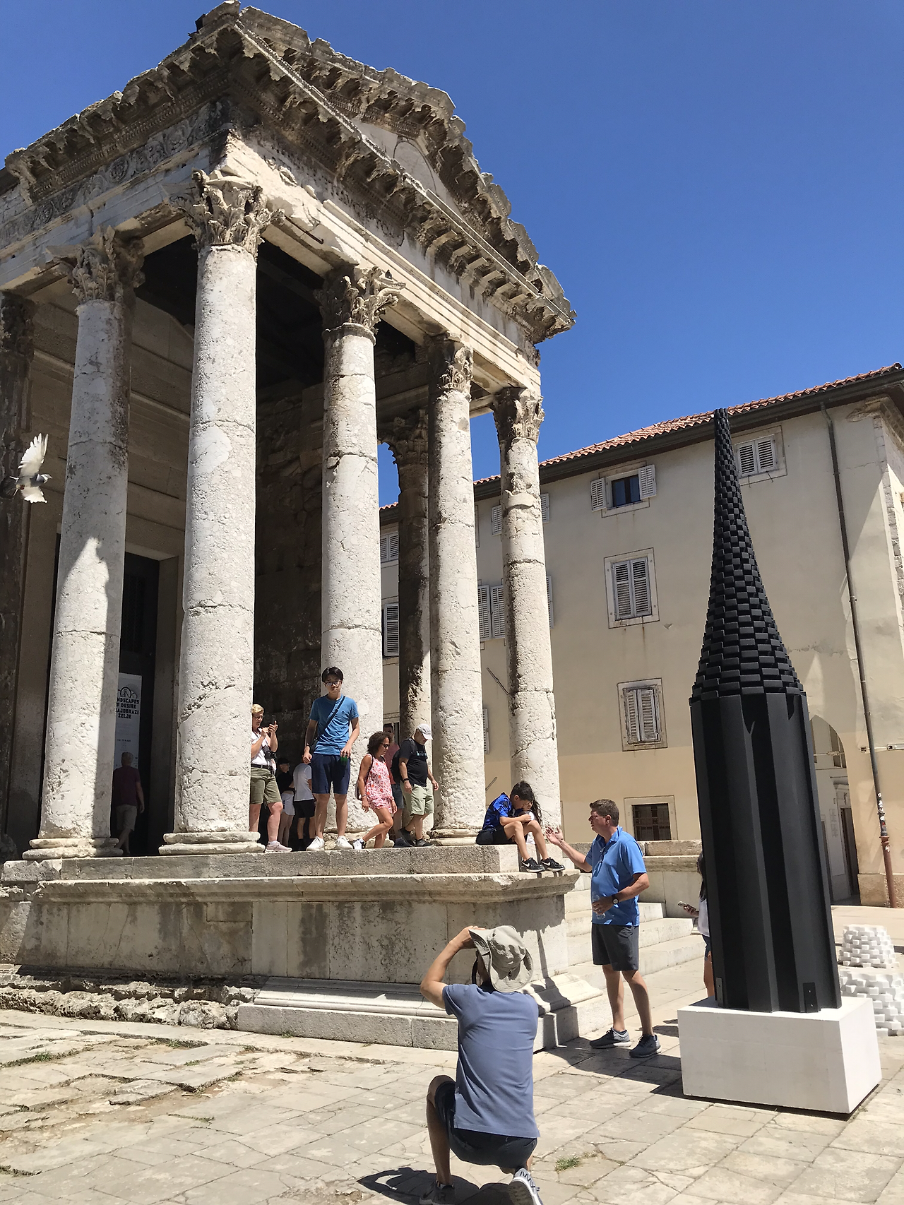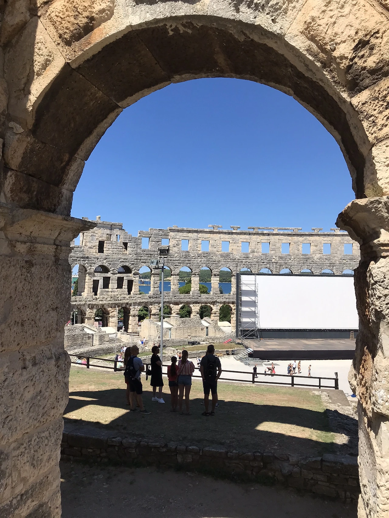 베로나의 아레나가 오페라 공연장으로 사용되고 있듯이 이 곳도 큰 스크린이 설치되어 있는 것으로 보아 오페라같은 공연이 올려지고 있는 듯하다. 로마 콜로세움보다 높이나 규모가 작지만 밖에서 충분히 볼 수 있어 한 바퀴를 둘러보며 구경을 했다. 구글 맵을 통해 이 지역의 유적지를 보니 세르게이우스 개선문, 아우구스투스 신전, 아레나가 대표적이다. 30분이면 충분히 다니며 볼 수 있다. 모든 유적들이 이탈리아에서 보던 것들과 똑같은데 규모만 작았다. 마치 로마의 일부분을 작게 만들어 놓은 듯했다.