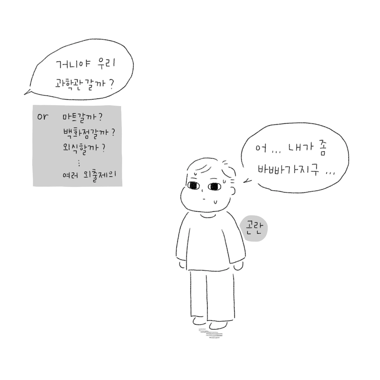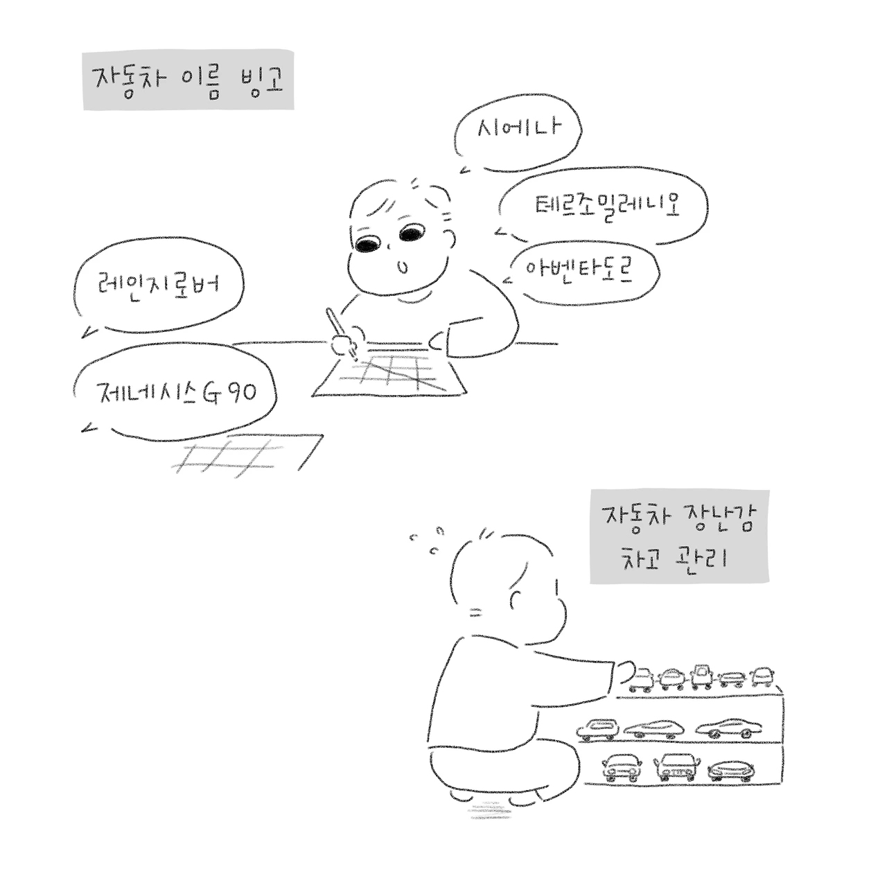 나가고 싶어할 때: 차구경 하러 나갈 때, 토미카 사러 갈 때.