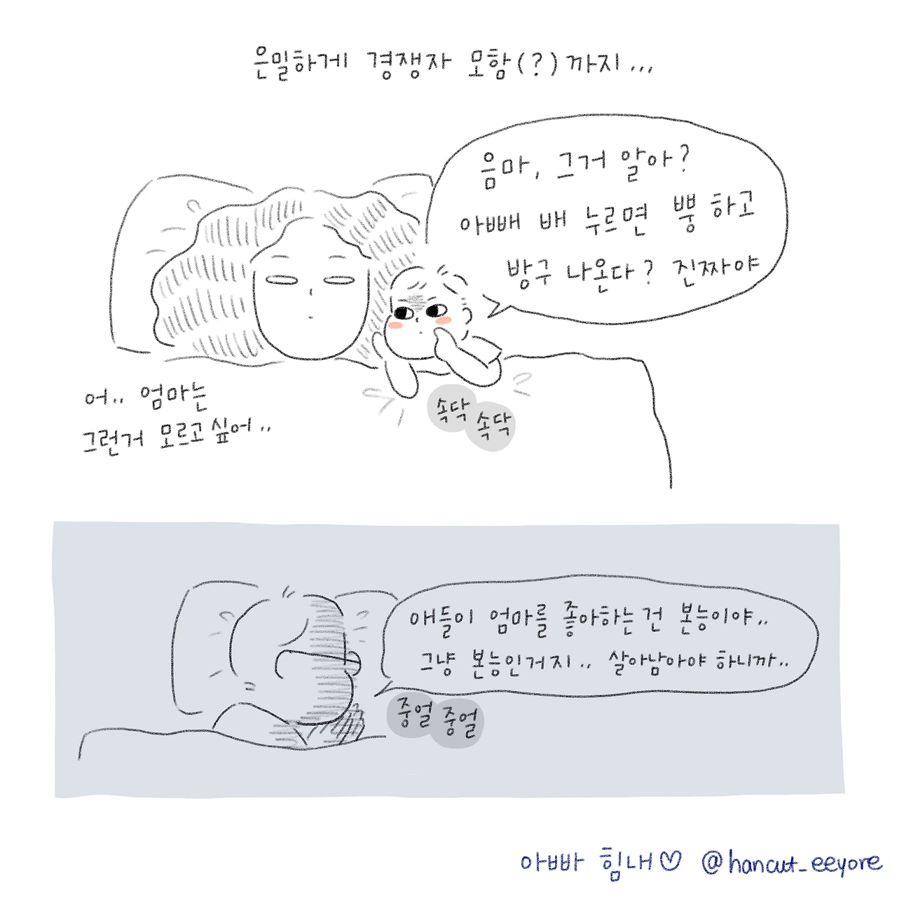 6살 아들을 키우며 약사로 일하고 있는 워킹맘입니다. 내 젊은 날들을 기록하고 아이를 키우는 일상을 그립니다. 인스타그램 @hancut_eeyore
