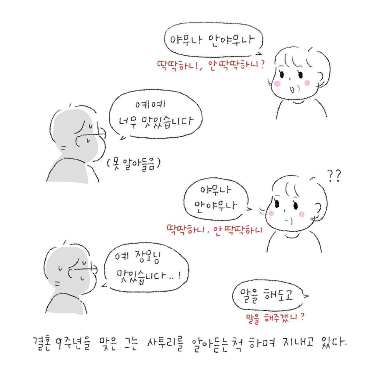 결혼 9주년, 사투리 실력이 전혀 늘지 않는 그에게 이 만화를 바칩니다.