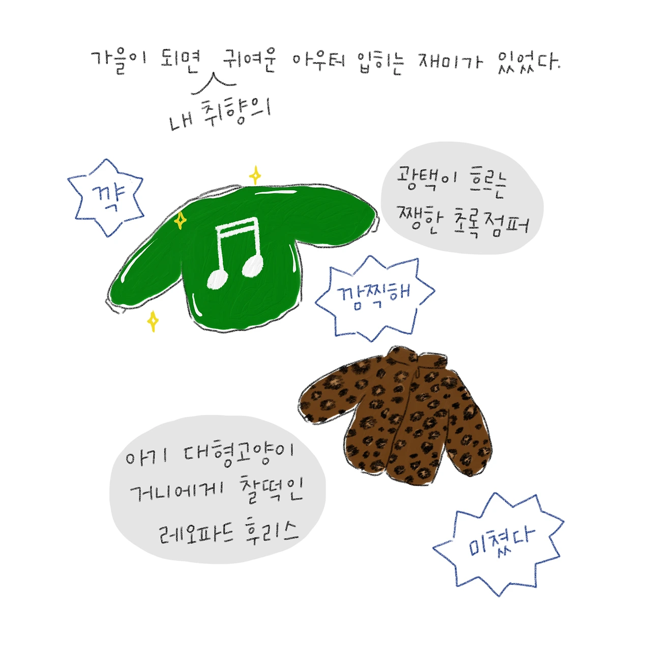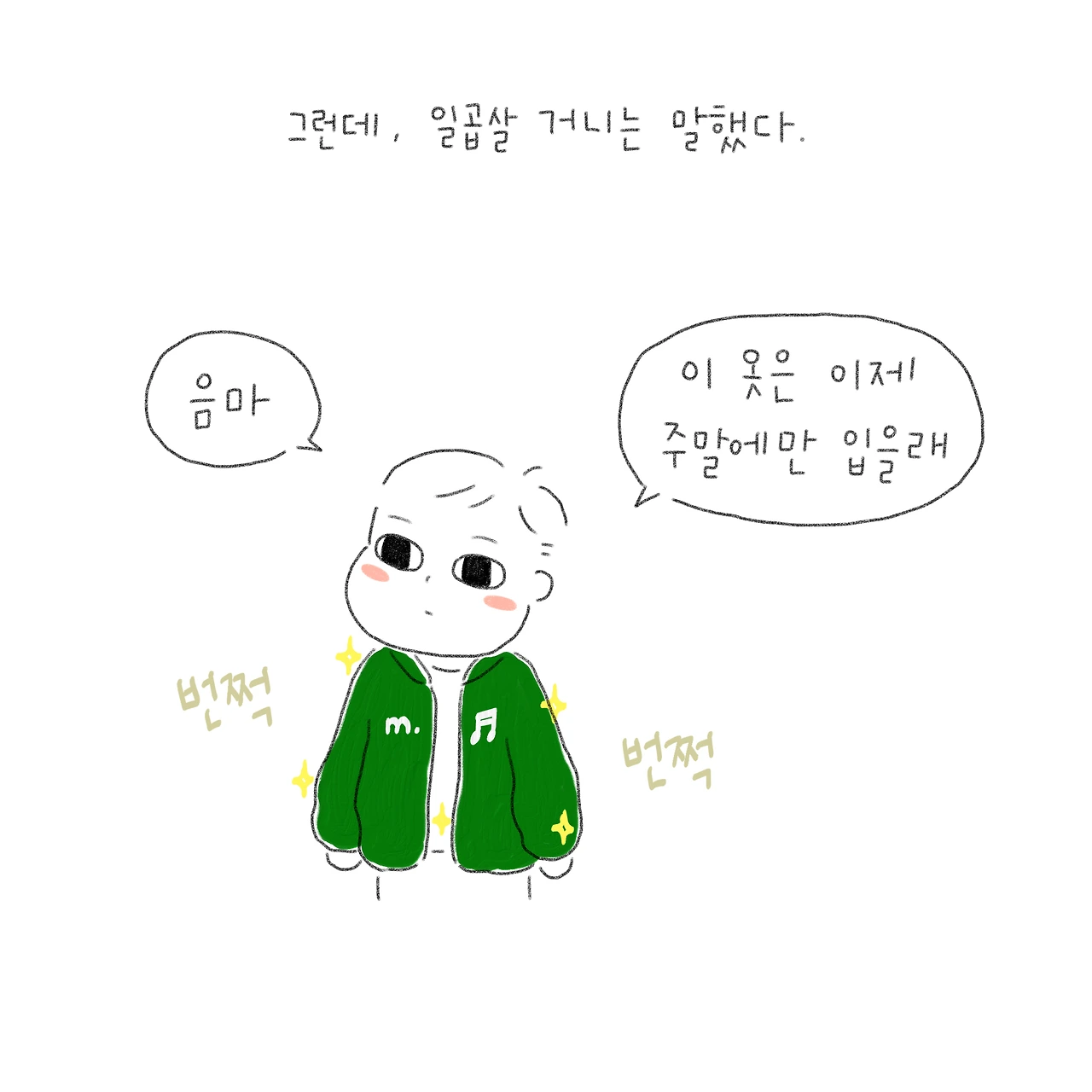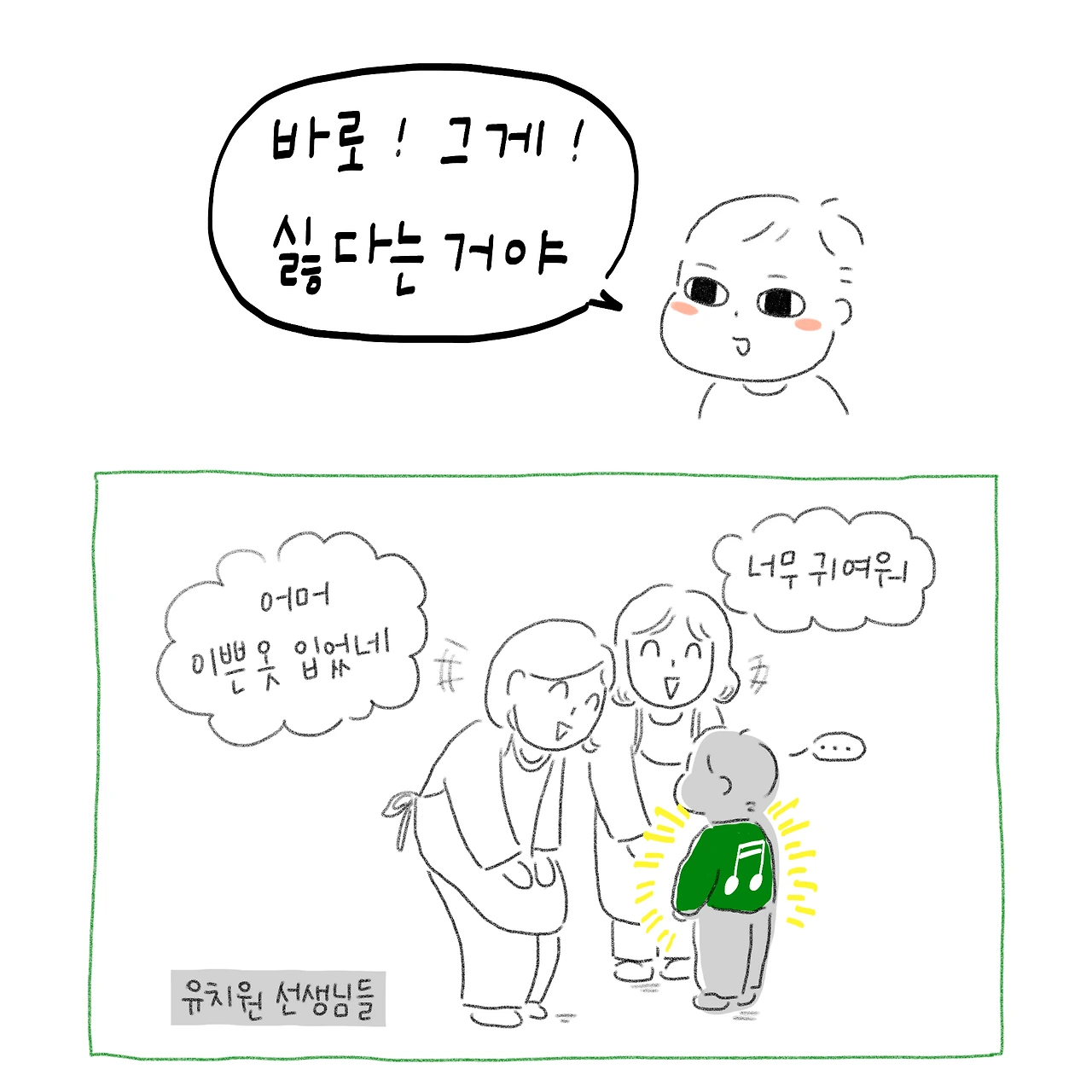 유난히 저 초록잠바만 안 입으려고 함. ㅎㅎ