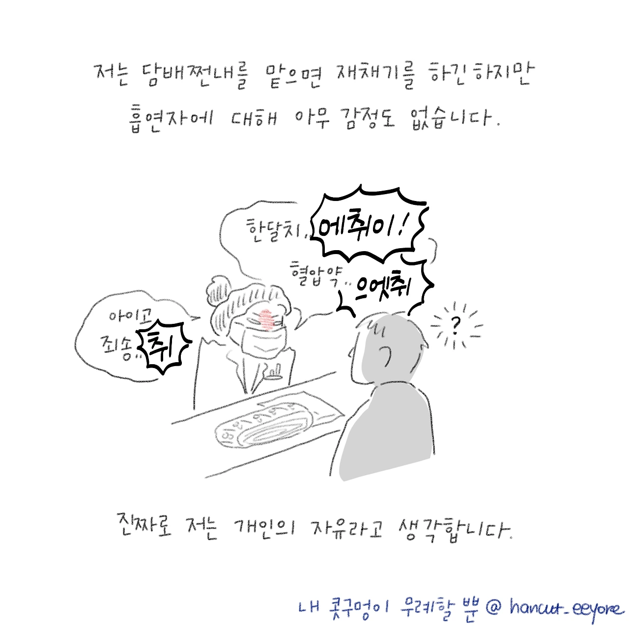 담배피는 사람들에 대해 아무 생각 없습니다 정말로!