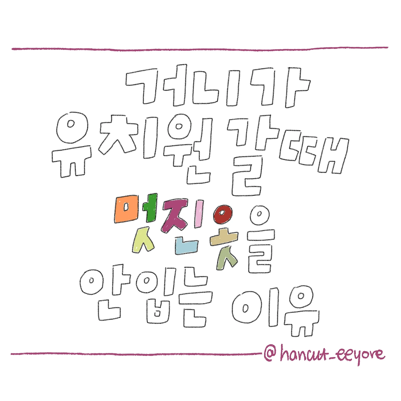 6살 아들을 키우며 약사로 일하고 있는 워킹맘입니다. 내 젊은 날들을 기록하고 아이를 키우는 일상을 그립니다. 인스타그램 @hancut_eeyore