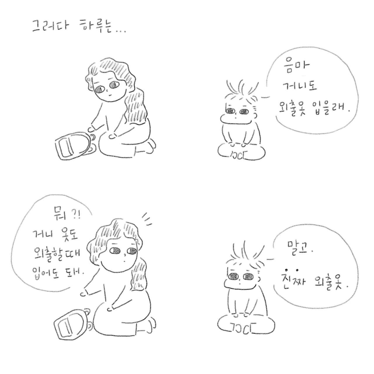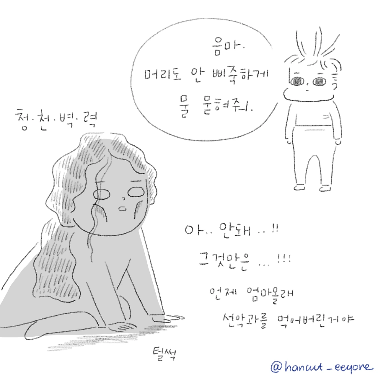 머리에 물묻혀 꾹꾹 누르는 그의 뒷모습에서 사춘기 거니를 미리 보았다.