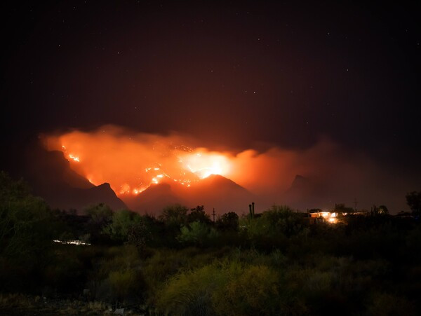 마치 불길에 타오르는 거대한 구렁이가 꿈틀거리며 산등성이를 넘나드는 것만 같았다. 산불이었다. 한 달이 넘게 애리조나주 산타 카탈리나 산맥의 119,987에이커(약 485.5701616 ㎢), 축구장 크기로 5만 개 이상의 면적을 태운 초대형 화재로 언제나 푸르르던 투손의 하늘은 부옇게 흐려졌다. 공기 중엔 매캐하게 타는 냄새가 섞여들어 눈과 코가 따끔했다. 인공위성에 포착될 만큼 커다란 산불의 연기가 캘리포니아까지 도달했다는 얘기까지 들렸다.