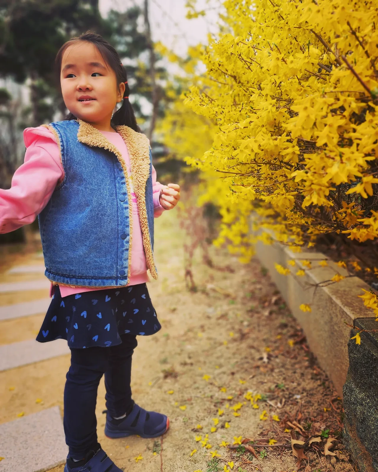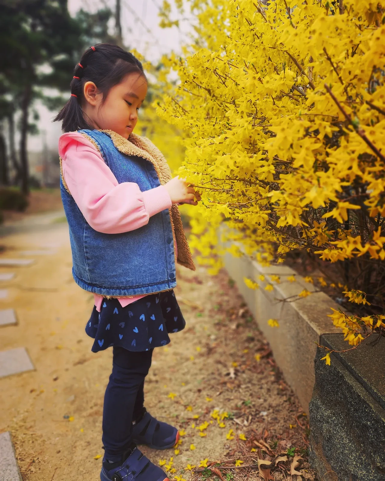 오늘은 #개나리. 볕이 없어도 너를 볕삼아 나리꽃이 제 머릴 향한다.
