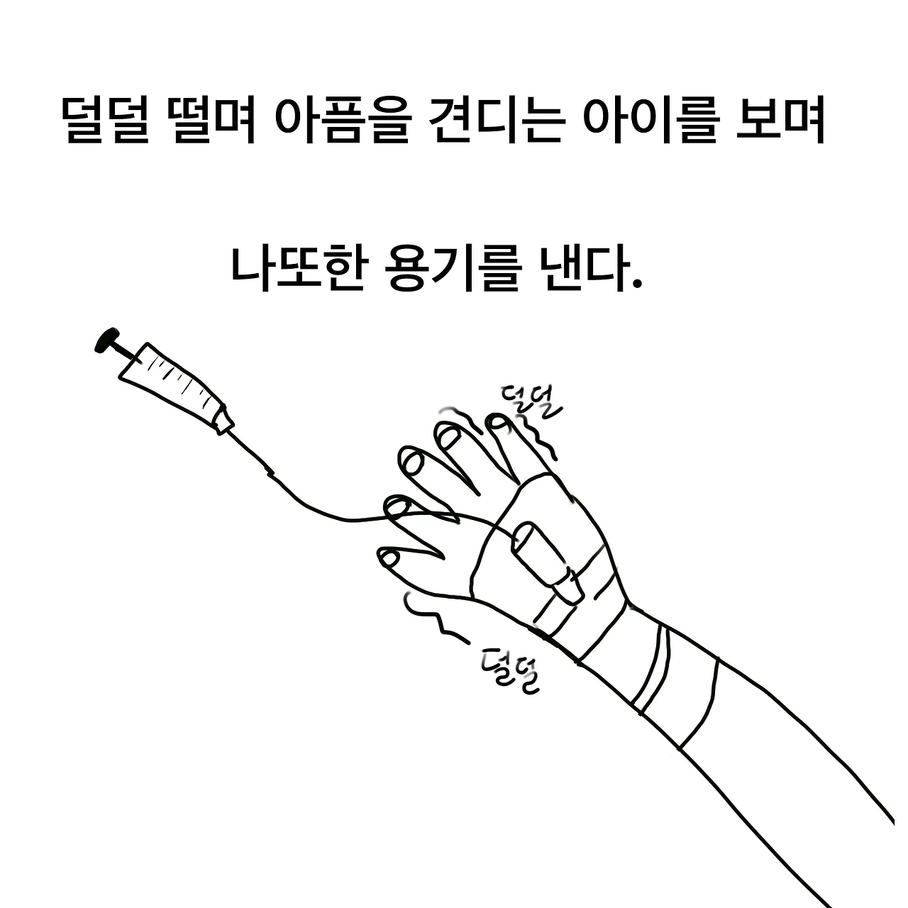 그러나 주사를 맞는 그 순간, 작은 손가락이 떨릴 때마다