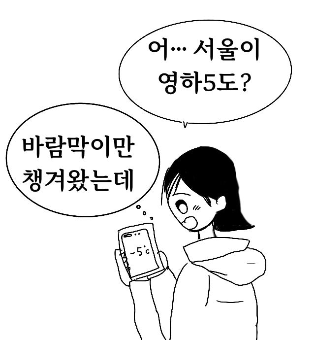 바람은 날카롭게 불었고, 온도계는 영하 5도를 가리키고 있었다.
