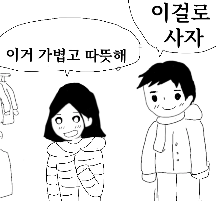 그때 남편이 내 손을 잡고 패딩 매장으로 데려갔다.