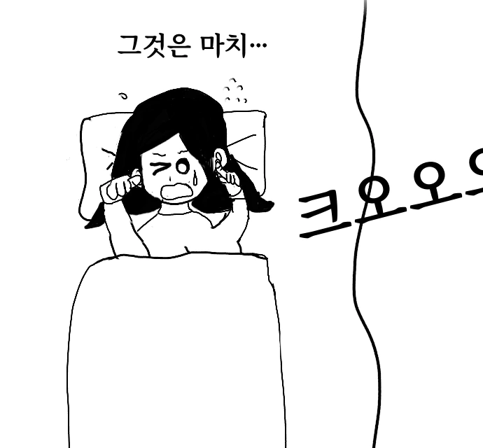 새벽 12시. 고요하던 병실에 낯선 소리가 스며들었다. 처음에는 작게 시작되더니 점점 거칠고 무겁게 울렸다. 그녀가 몸을 뒤척일 때마다 잠시 멈췄다가, 다시 탱크가 지나가는 듯한 소리가 병실 안을 가득 채웠다.
