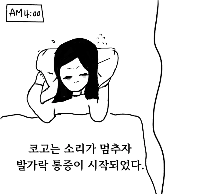 잠시 코 고는 소리가 멈췄다. 병실에 고요가 내려앉는가 싶던 순간, 이번에는 내 발가락이 비명을 지르기 시작했다. 칼날로 살을 베는 듯한 통증, 가시밭 위를 한 걸음씩 내딛는 것 같은 고통이 파도처럼 밀려왔다. 숨을 고르고, 이를 악물고, 그 시간을 견뎌냈다.