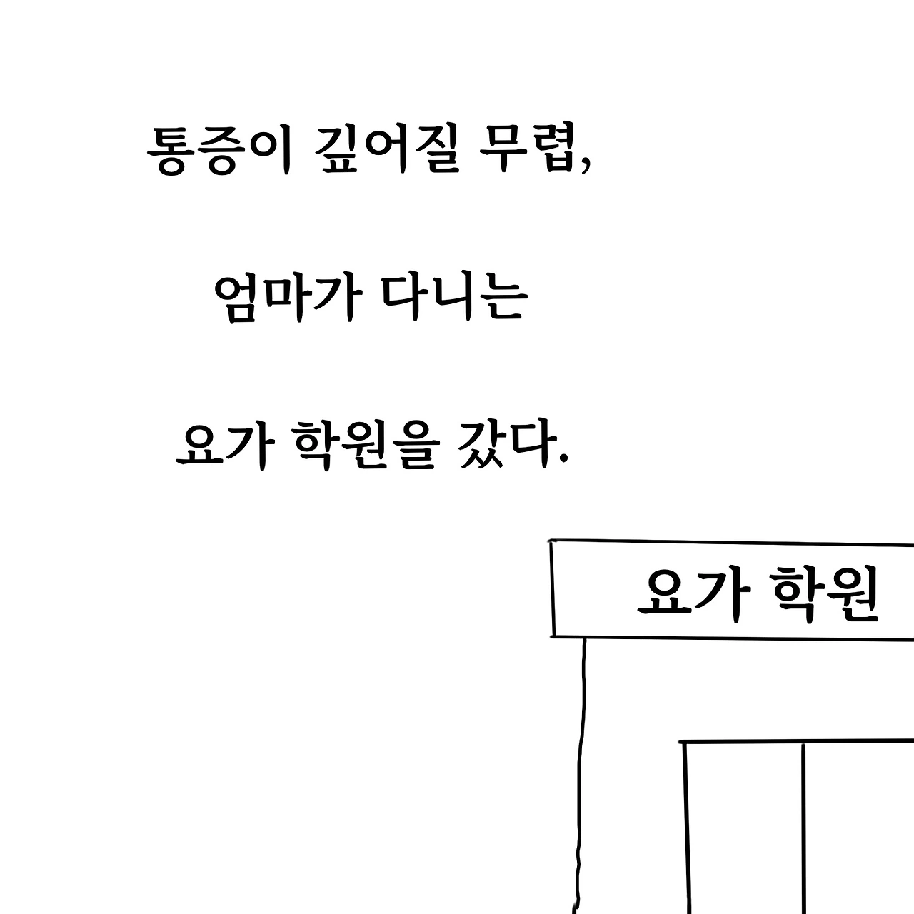 통증이 깊어질 무렵, 엄마가 다니는 요가 학원에 함께 가보자고 권하셨다. 예전엔 요가 학원도 다녔던 터라, 가볍게 따라 할 수 있을 줄 알았다. 하지만 내 몸은 이미 예전의 내가 아니었다.