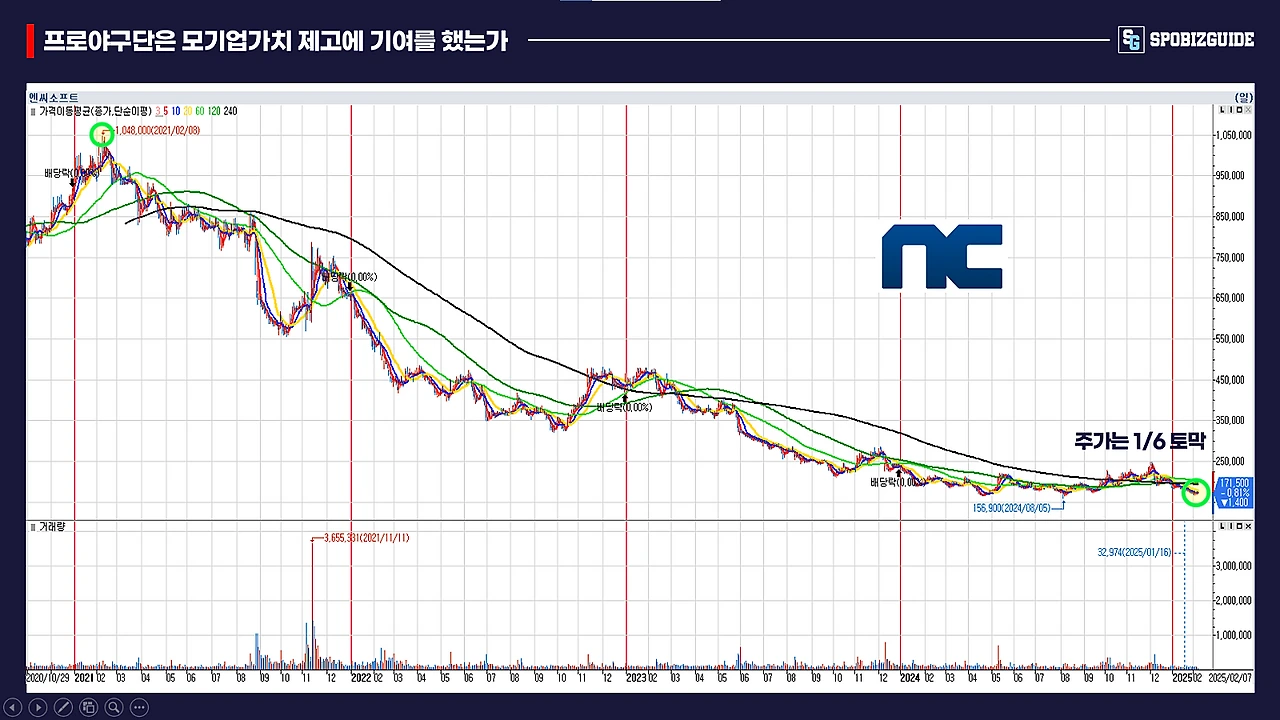 (*최고가 대비 1/6토막난 주가 (104만 8,000원→17만 2,900원(2025년 2월 14일 기준)), 사우디 빈 살만 왕세자를 포함한 주주의 98%가 손실 기록 중)
