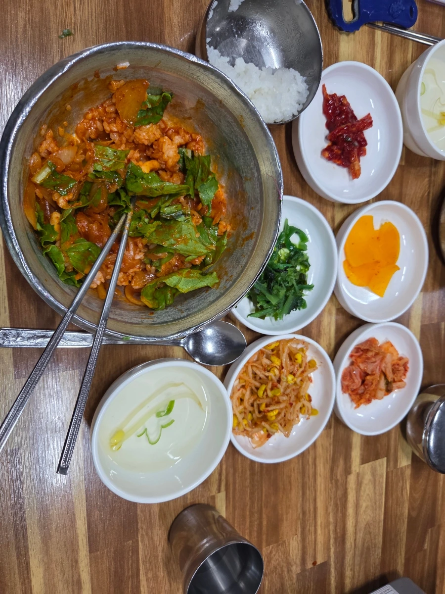 양푼에서 흰밥과 어우러진 맛이 일품이다.
