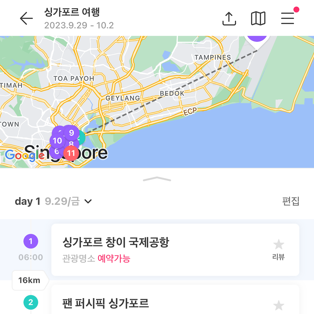 원래는 1일 차에 가고 싶던 곳을 다 넣어뒀다가, 형이 짠 계획표를 보고 재조정한 모습이다.