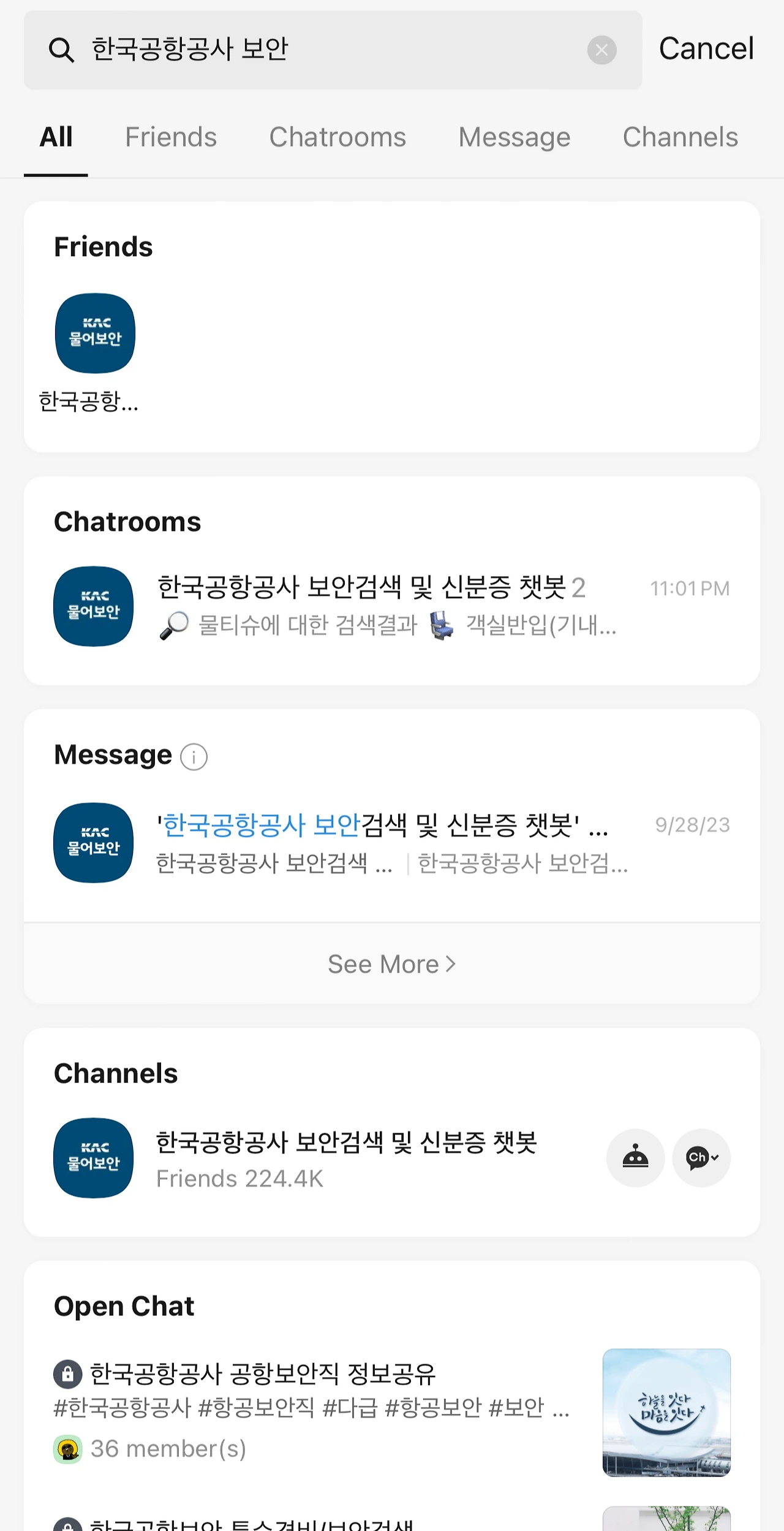 한국공항공사 보안검색 및 신분증 챗봇