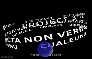 시작 화면은 이번 전시의 계기라고 볼 수 있는 꾸아르누, 그리고 평소 'Acta non Verba(말보다 행동)'이라는 라틴어를 인상 깊게 생각해 왔기에 만들어진 활동명 ActaV, 그리고 이번 프로젝트의 초기 이름이 새겨진 구체가 돌아가는 형태이다.