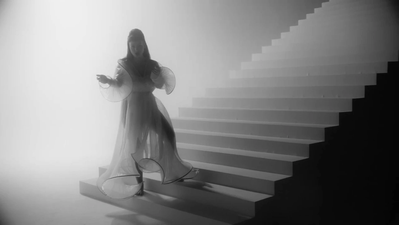 그녀가 기대에 부응하며 마침내 마주한 이면의 분신은 화려하고 주술적인 코코슈닉을 쓰고, 마녀에 걸맞은 아이 메이크업을 바르며, 롱 슬리브 맥시 블랙 드레스를 입고 있는 이계의 여왕─1924 SF 영화 <Aelita - Queen of Mars> 레퍼런스─이었다. 마녀와 손을 맞대며 곧 사진 속 프렌지 드레스를 입은 여신이 돼, 올랐던 계단으로 다시 내려오며 막을 내린다.