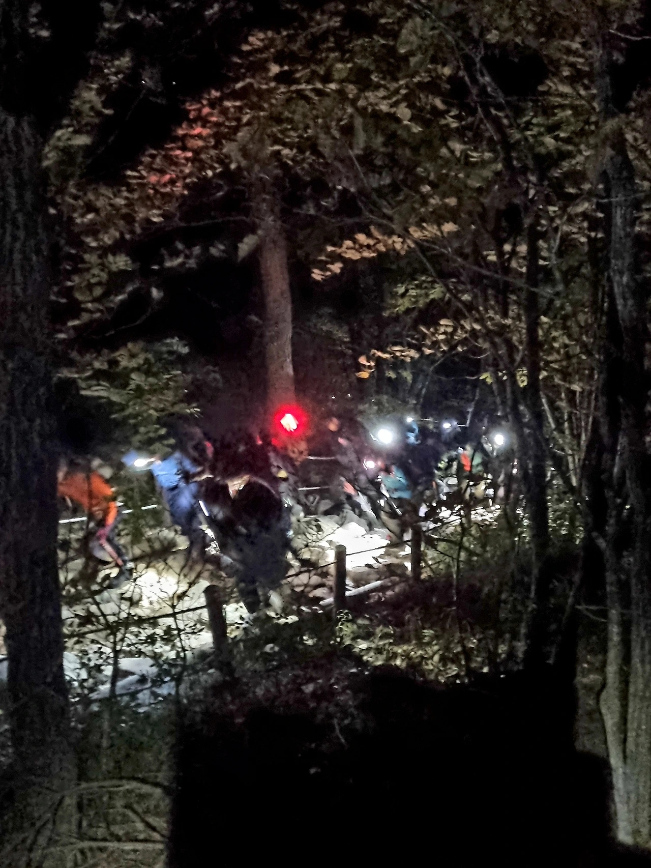 1시간 정도 지났을 때쯤 계곡 물소리가 크게 들린다. 설악폭포가 여기쯤이라고 함께 온 일행이 이야기해 주지만 어둠 속이라 폭포를 볼 수 없다.