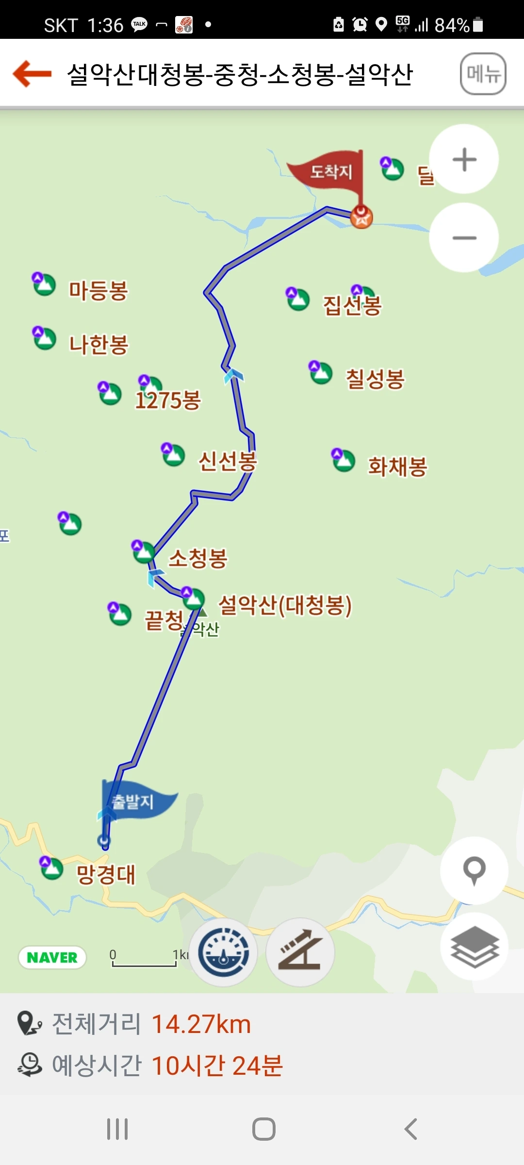 오색에서 설악동까지 이동 경로