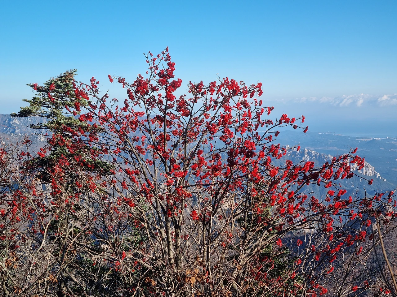 희운각으로 가는 길은 가파른 내리막이다. 등산로 옆으로 새빨간 열매가 눈길을 사로잡는다. 앙상한 나뭇가지에 마가목 열매가 주렁주렁 달린 모습은 단연 돋보인다. 혹독한 날씨를 견디며 척박한 땅에서 맺은 이 빨간 열매는 귀한 약재로 세상을 널리 이롭게 하는 데 쓰일 것 같은 생각을 들게 한다.