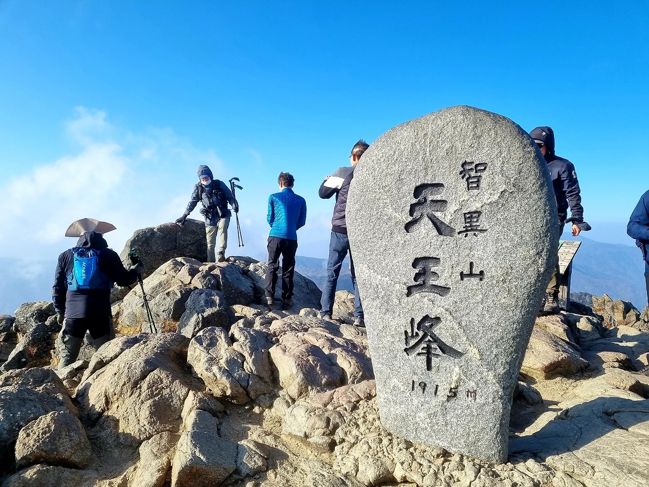 제석봉 고사목 군락지제석봉 전망대에 올라서니 천왕봉이 가까이 보인다. 정상에 많은 인파가 길게 늘어선 모습이 여기서도 보인다. 저 사람들은 아마도 정상 인증을 받기 위해 길게 줄을 선 산객 들일 것이다. 추운 날씨에 저기에 줄 서서 기다려야 한다는 생각에 벌써부터 걱정이 된다. 나보다도 함께한 동료가 더 걱정하는 모습이다. 그분은 인증할 필요가 없지만 내가 인증사진 찍을 때까지 기다려야 하는 상황이니 말이다.