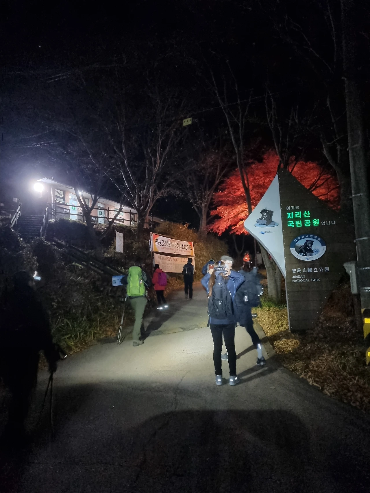 백무동 계곡을 따라 오르는 산객들의 헤드랜턴 불빛이 등산로를 훤하게 비추고 있지만, 등산로 외에는 아무것도 보이지 않는다. 드라마에서 선보이는 수려한 경관도 상상해 보고, 알록달록한 단풍으로 보기 좋게 물 든 모습도 생각해 보지만 산은 아무것도 보여주지 않는다.