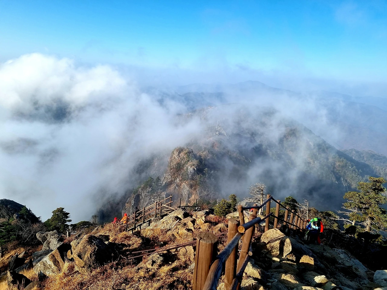 젊은 남녀와 초등학생들까지 다양한 연령대의 사람들이 올라오고 있다. 정상이 코앞이라 그런지 힘든 내색 없이 밝은 표정으로 열심히 오르고 있다.