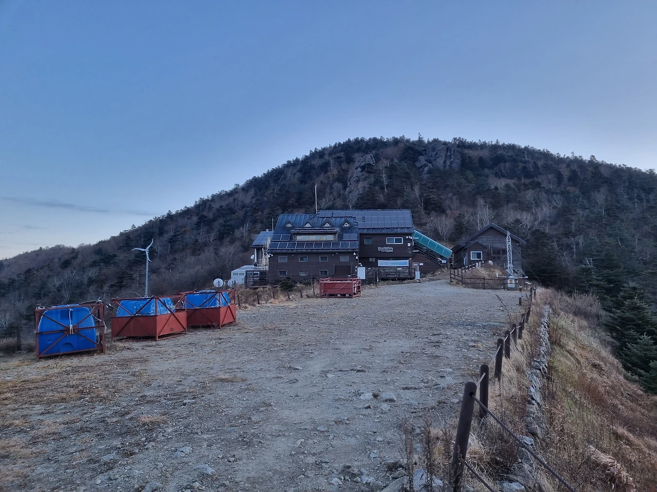 어둠이 완전히 물러갈 때쯤 장터목대피소에 이른다. 여기서 아침을 먹고 해 뜨는 모습까지 보고 갈 계획이었지만 구름이 끼어 있어 해를 보기에는 어려울 듯한 하늘이다.