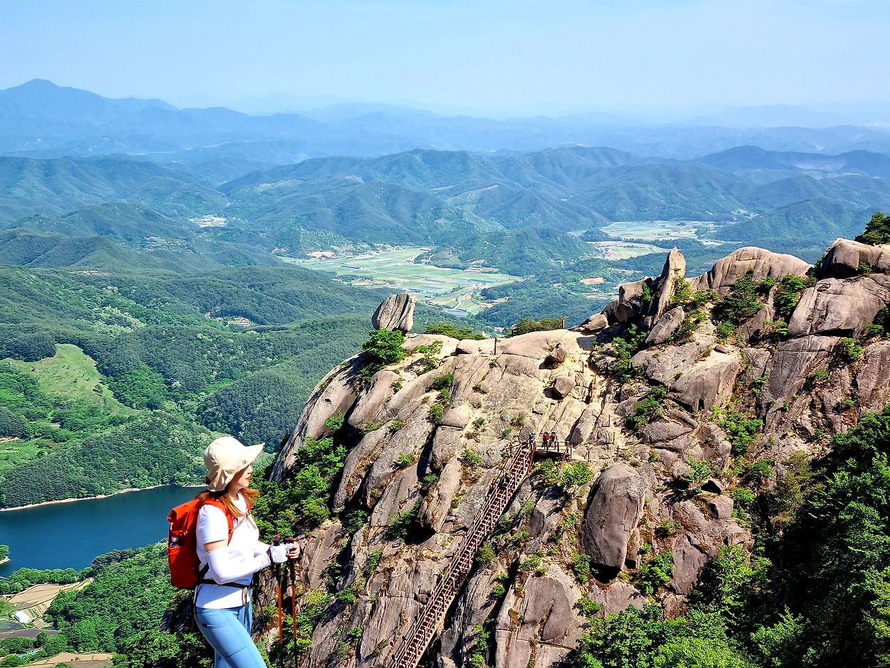 정상에 이르니 여기도 인증사진 찍는 사람들로 북새통이다. 레깅스 입은 젊은 산객들이 인스타그램에 올릴 사진을 건지려는 듯 바위 위에서 몇 번씩 포즈를 취하는 모습이 보인다.