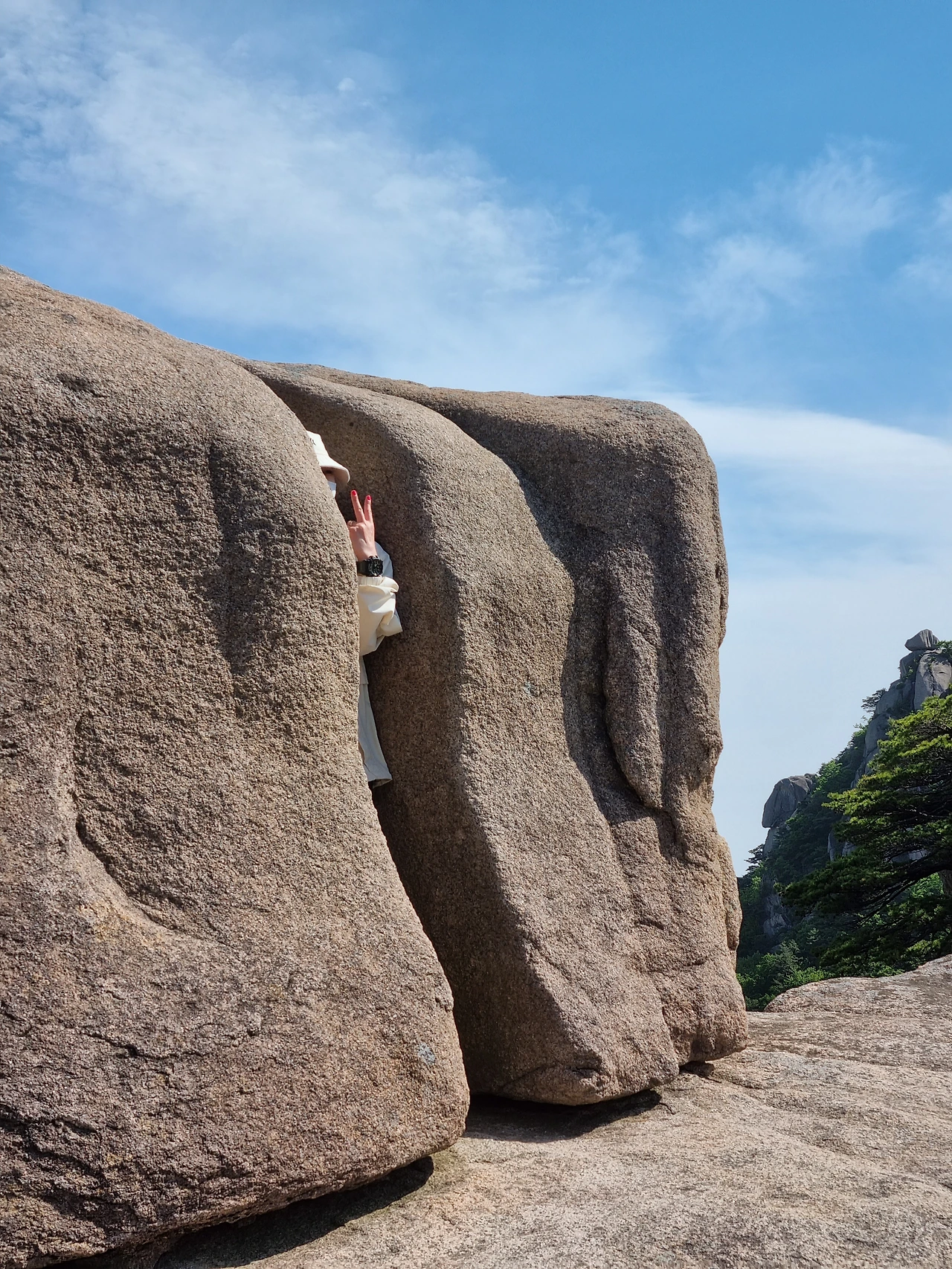 바위에 끼어 못 나오는 것은 순결이 아니라 비만이 원인이겠지만, 버거워 보이는 몸을 바위틈으로 억지로 쑤셔 넣는 한 등산객의 행동을 보니, 나도 모르게 입가에 잔잔한 미소가 번진다. 산객의 행동을 지켜보는 주변 사람들 표정도 재미있어 보인다. '뚱뚱한 사람은 위험할 수 있으니 들어가지 마시오.'라는 주의 안내판이라도 하나 세우면 좋겠다는 철없는 생각을 해 보며 마지막 하산길을 서두른다.